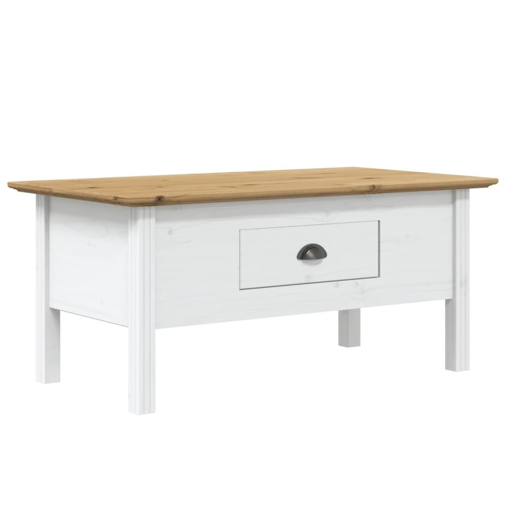 Coffee Table BODO White and Brown 39.4"x21.7"x18.1" Solid Wood Pine
