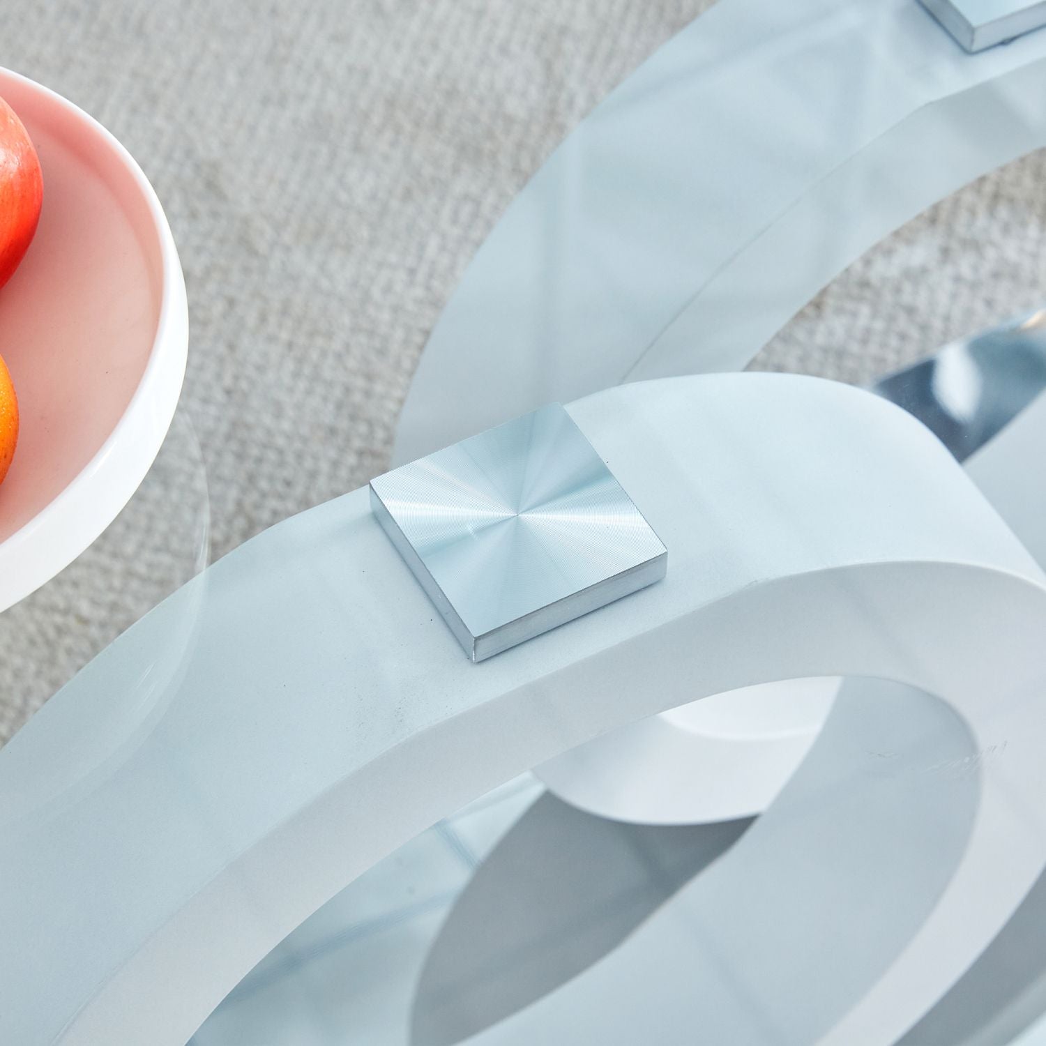 [Circular Support Structure]: The support structure of the coffee table is designed with two interconnected circles, a unique design that is not only beautiful but also reflects elements of modern art.