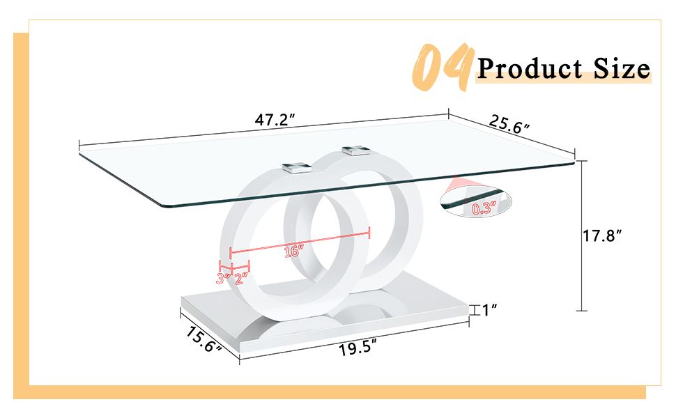 [Clear Glass Top]: The tabletop is made of clear glass, which is not only aesthetically pleasing but also visually expands the space, making the room appear more spacious and bright.