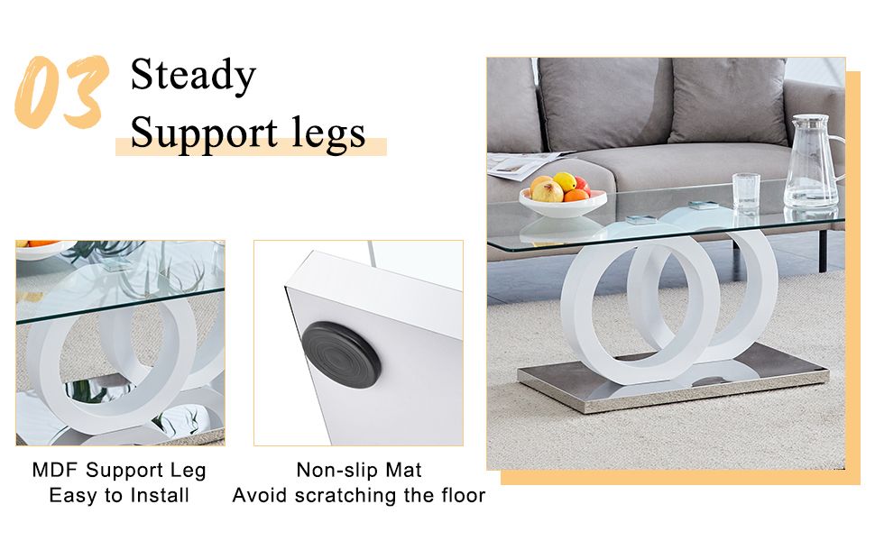 [Modern Minimalist Style]: This glass coffee table features a modern minimalist design, suitable for pairing with various contemporary living room decorations to enhance the sense of fashion in the space.