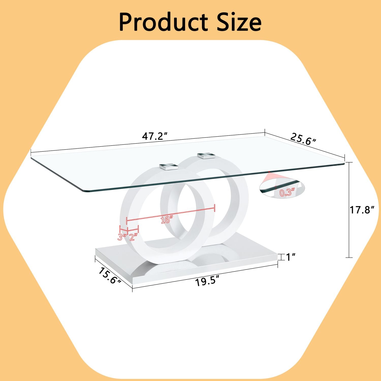 Contemporary Style Glass-Top MDF Coffee Table with White Base - Suitable for Living Rooms and Lounge Areas, Product Dimensions are 47.2*25.6*17.8Inches.