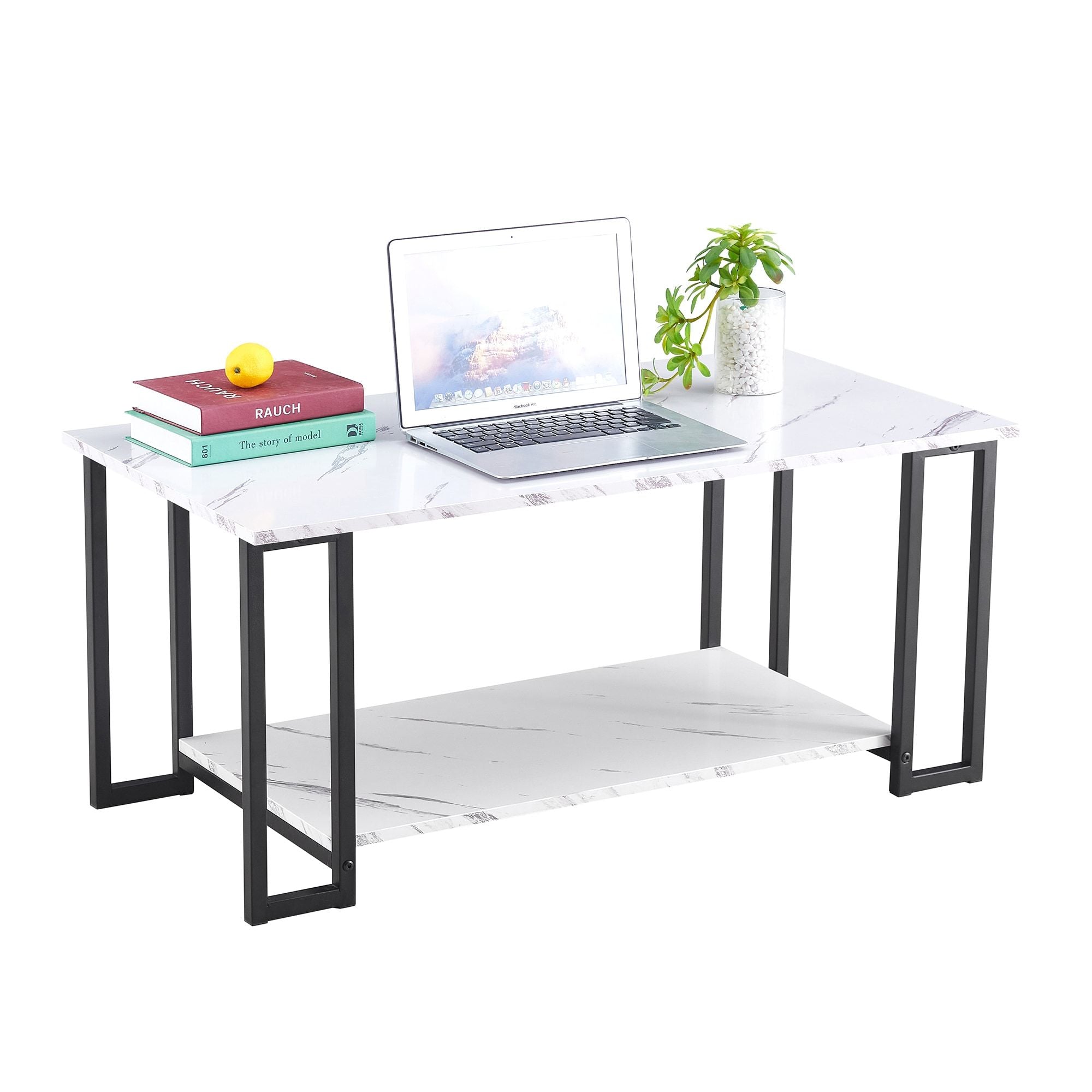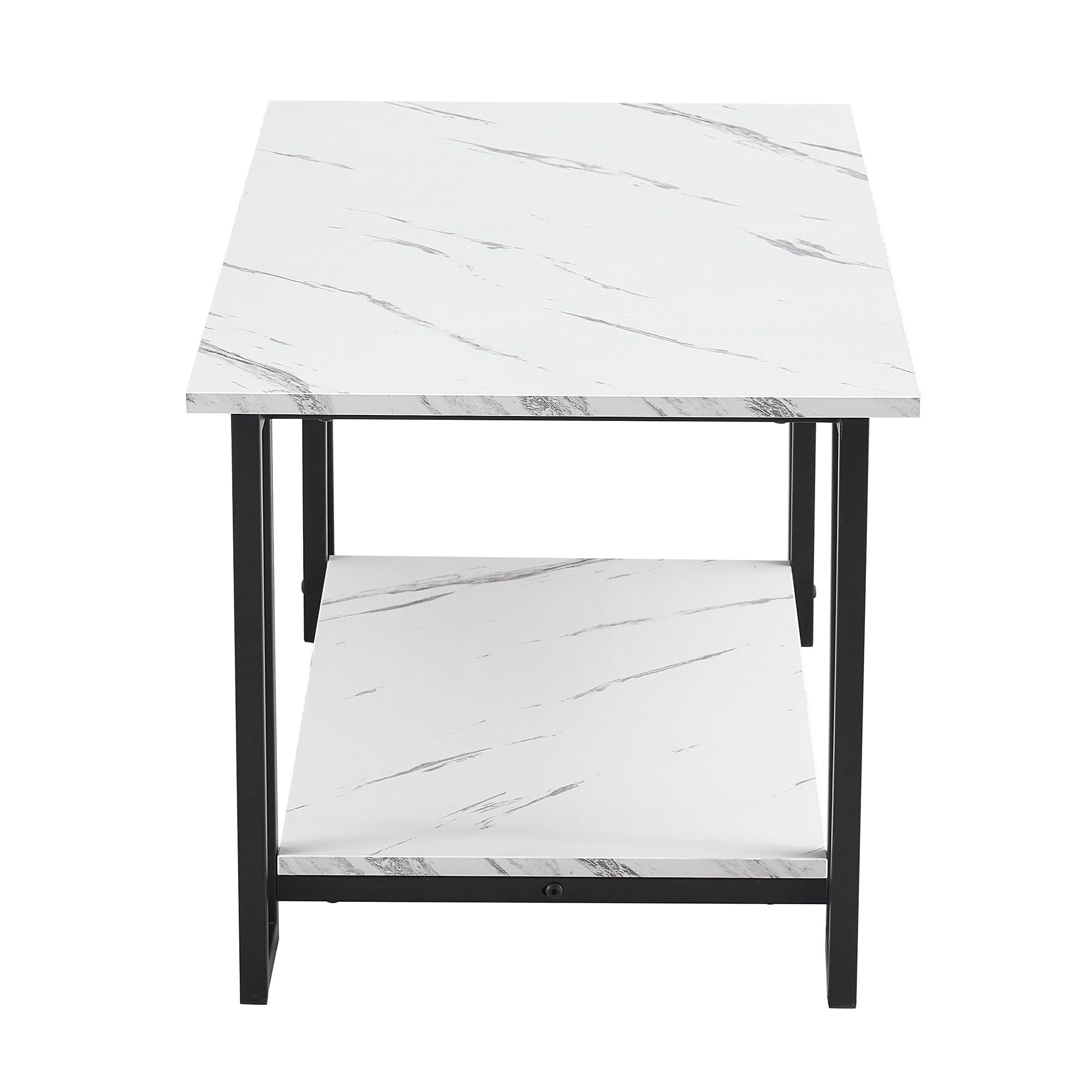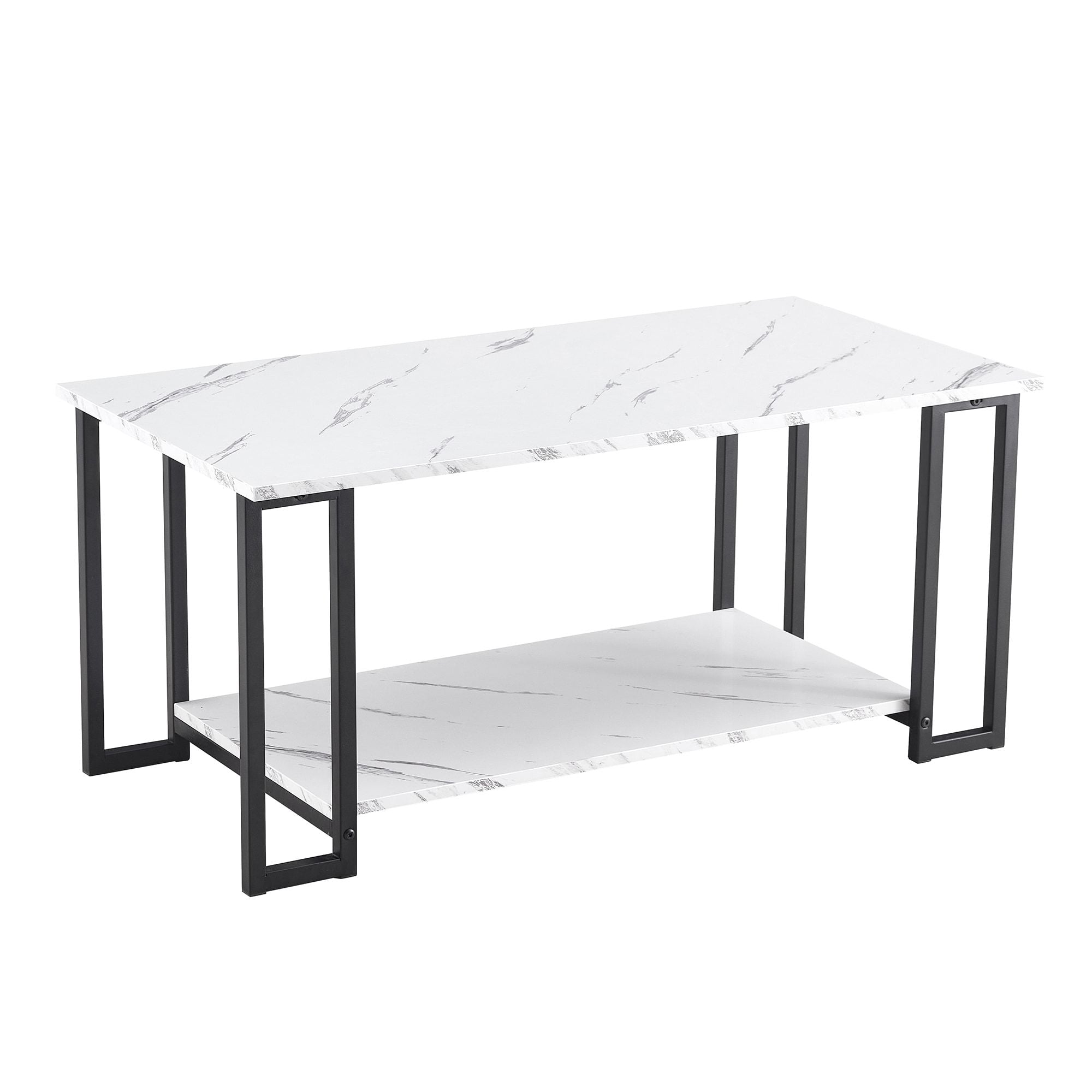 D&N Coffee Table, 2 Layers 1.5cm Thick Marble MDF Rectangle 39.37" L Tabletop Iron Coffee Table , Dining Room, Coffee Shop, Resterant, White Top, Black Leg
