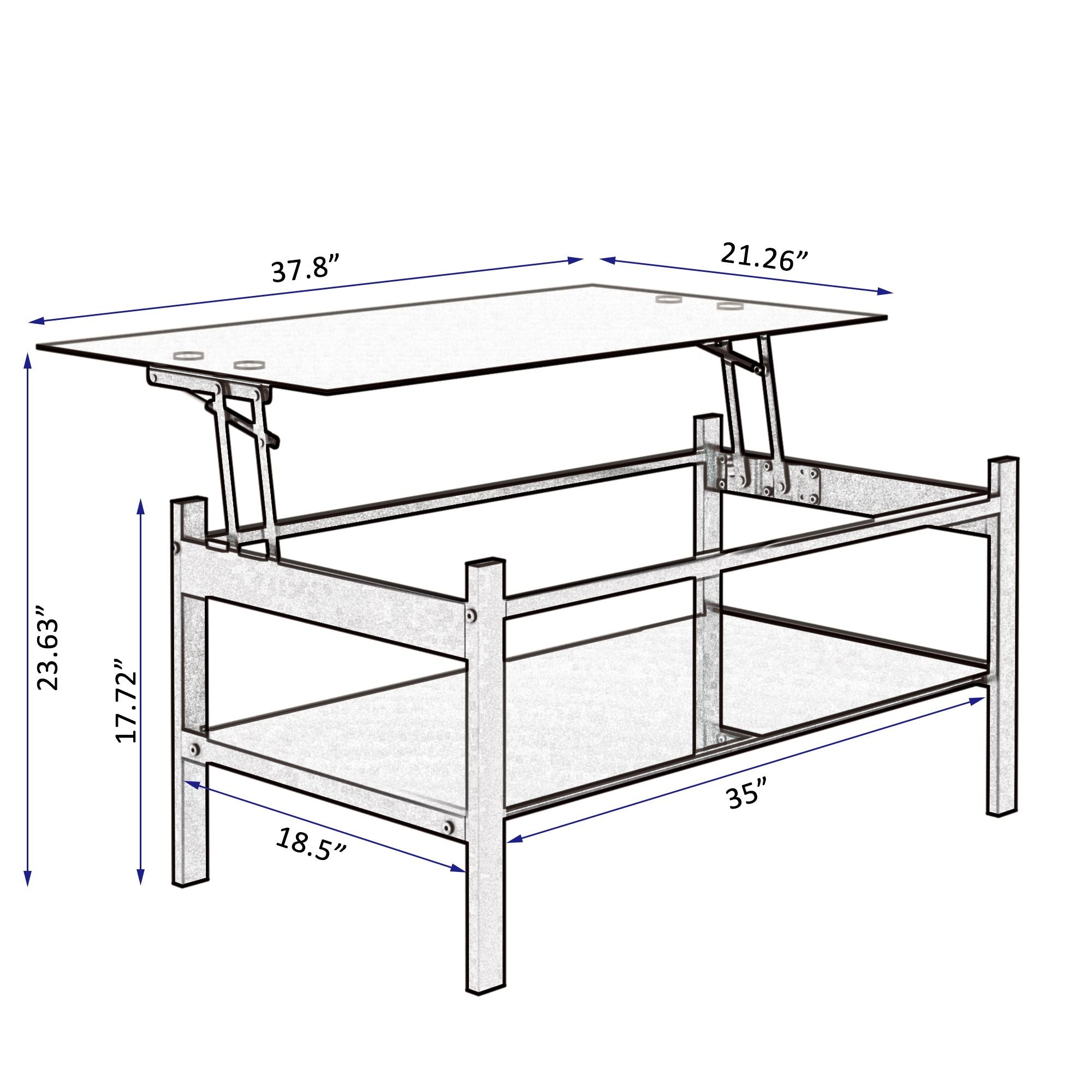 Glass Lift Top Coffee Table; Modern Simple 2-Layer Tempered Glass Coffee Table for Living Room; Black