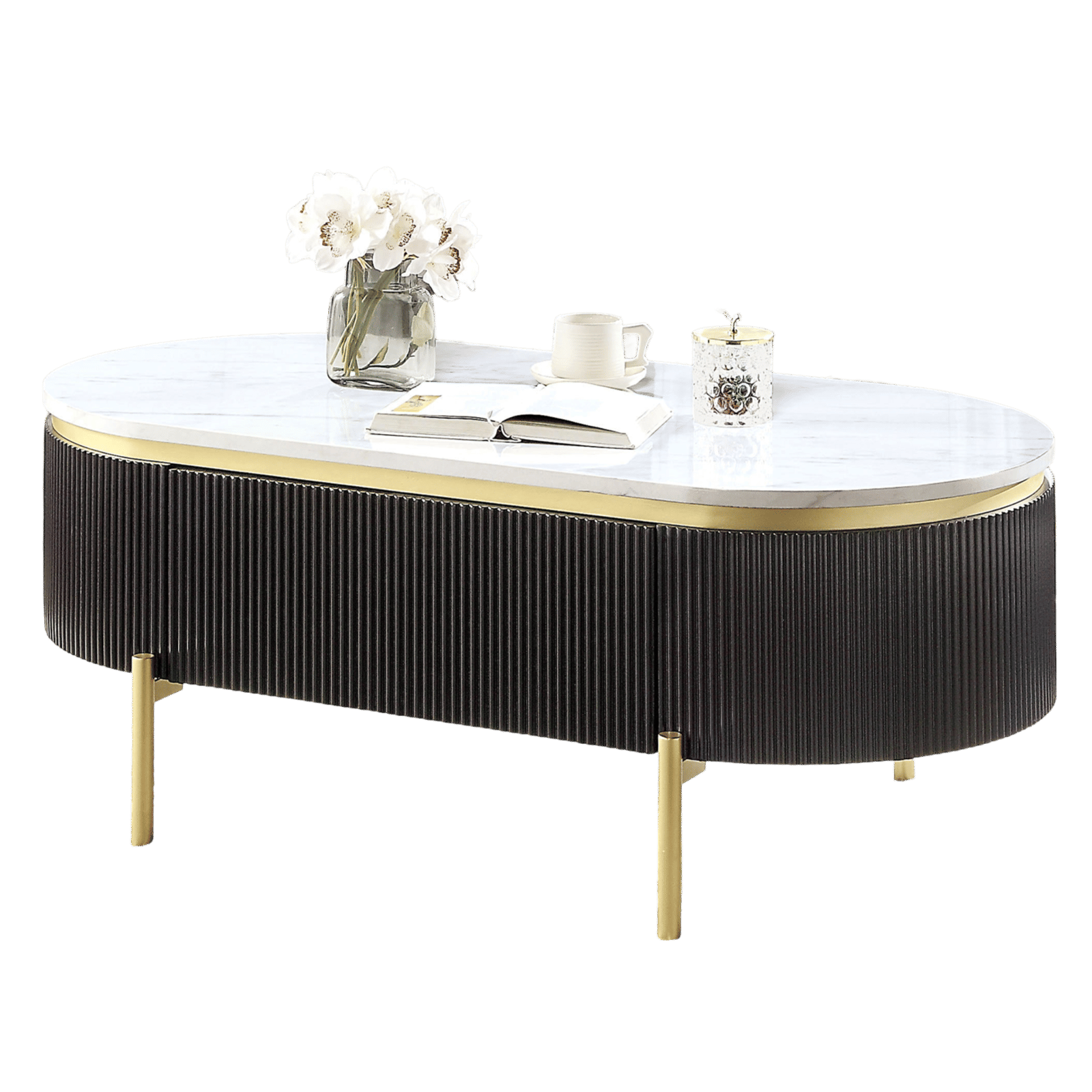 Gorgeous Dark Walnut Finish 1pc Coffee Table White Faux Marble Top Living Room Table W Drawer
