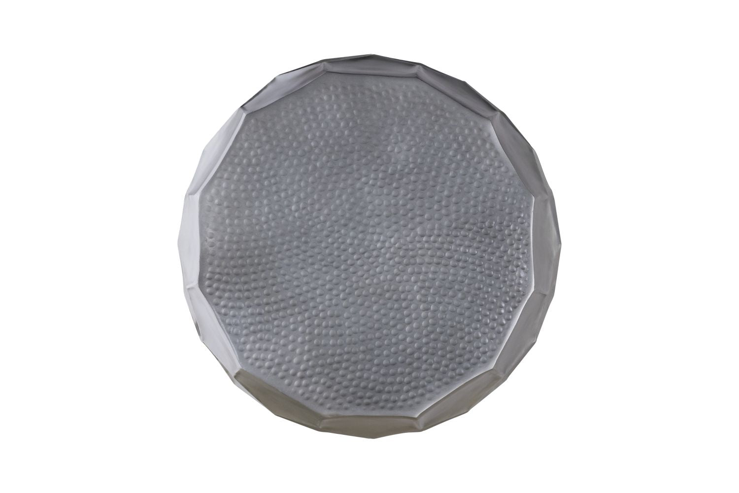 Modern Contemporary Round Aluminum material 32" Coffee Table and 21"Height End Table Set 2PC Tables with Glossy Diamond-Patterned Base Antique Silver