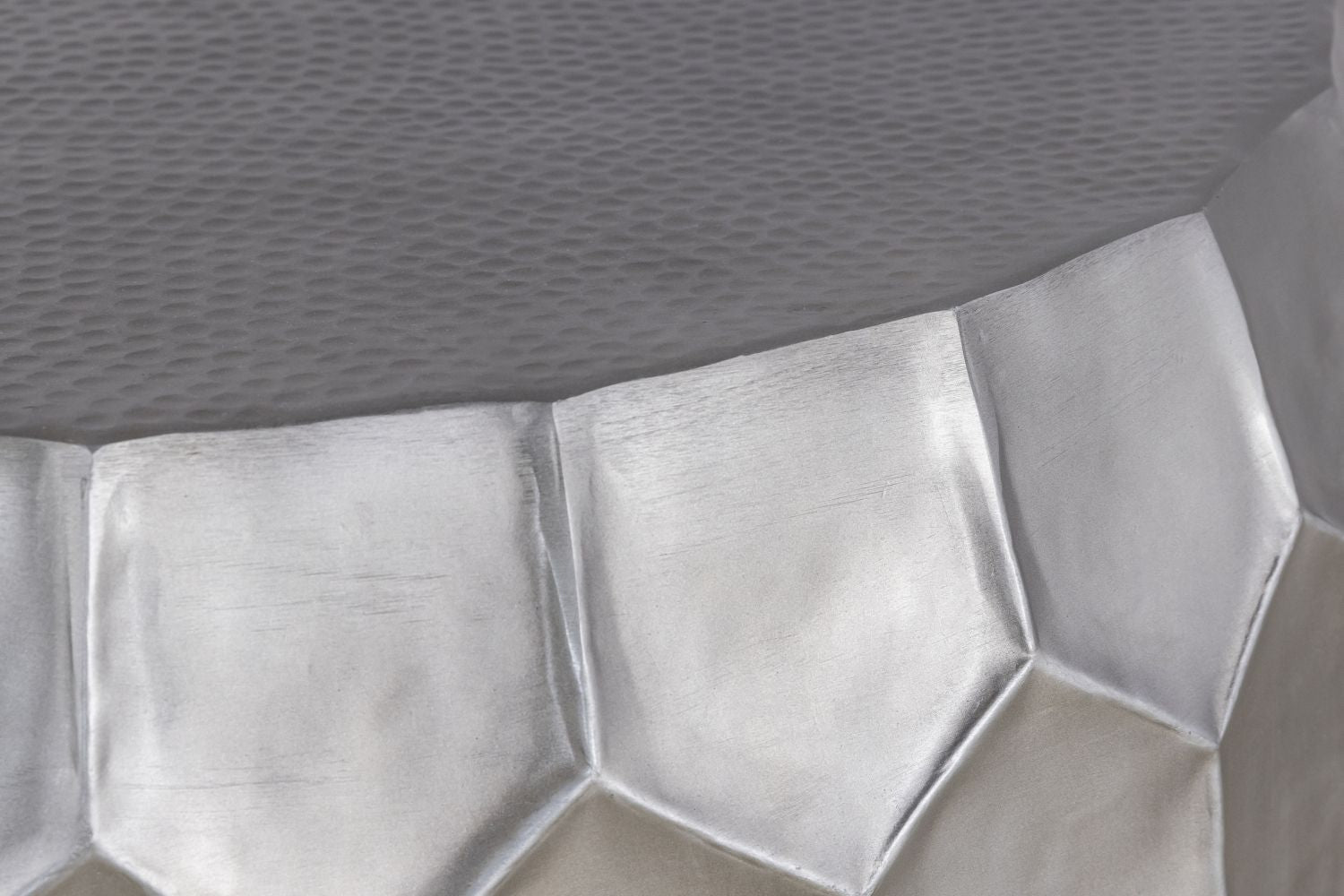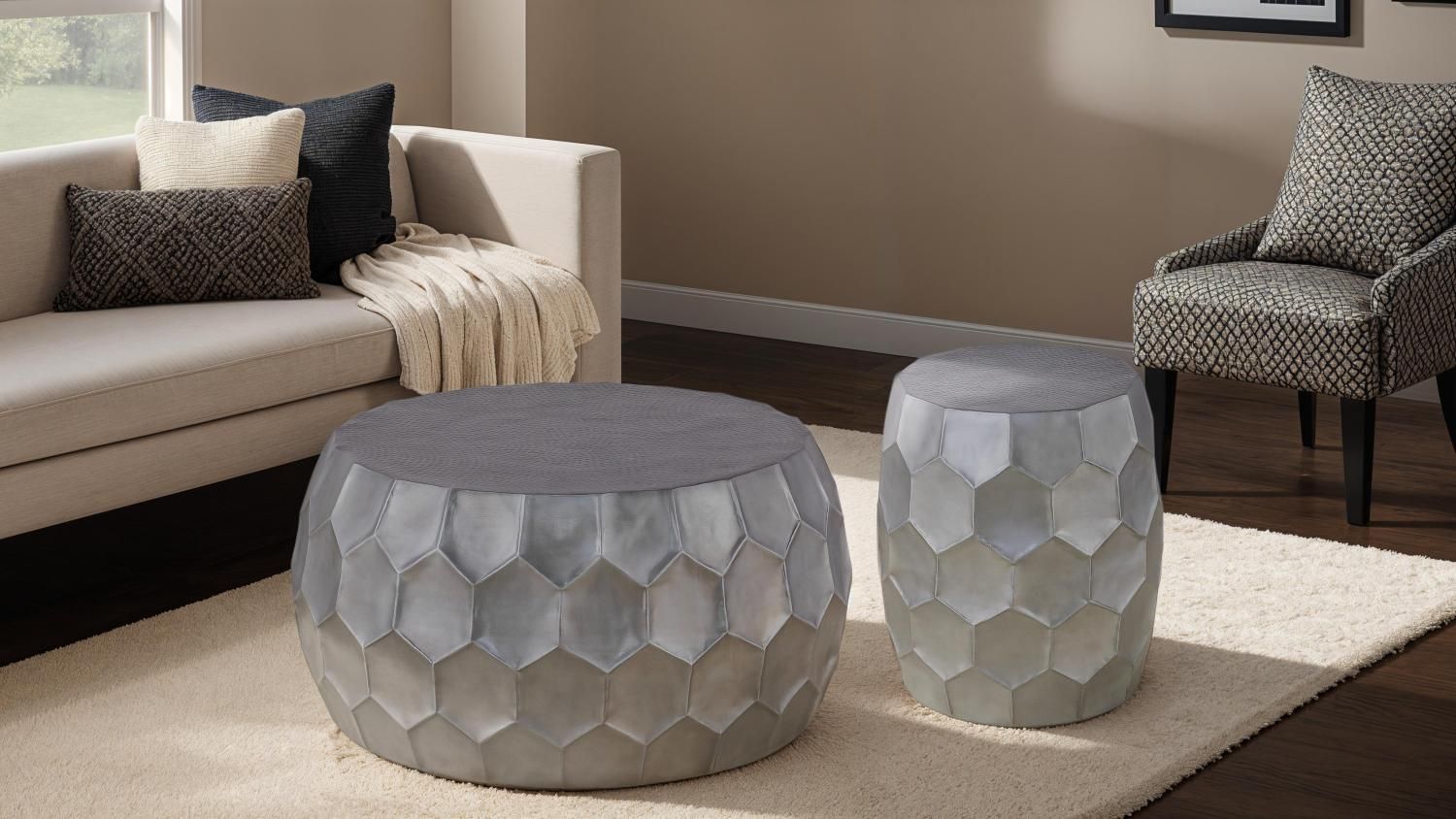 Artisanal Hand-Hammered Design – This beautifully crafted set features an intricate hexagonal pattern, showcasing expert metalwork that adds depth, texture, and a luxurious handcrafted touch to your living space.