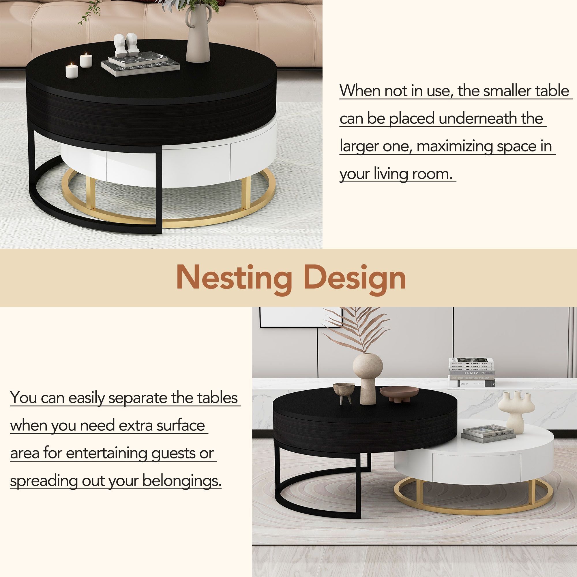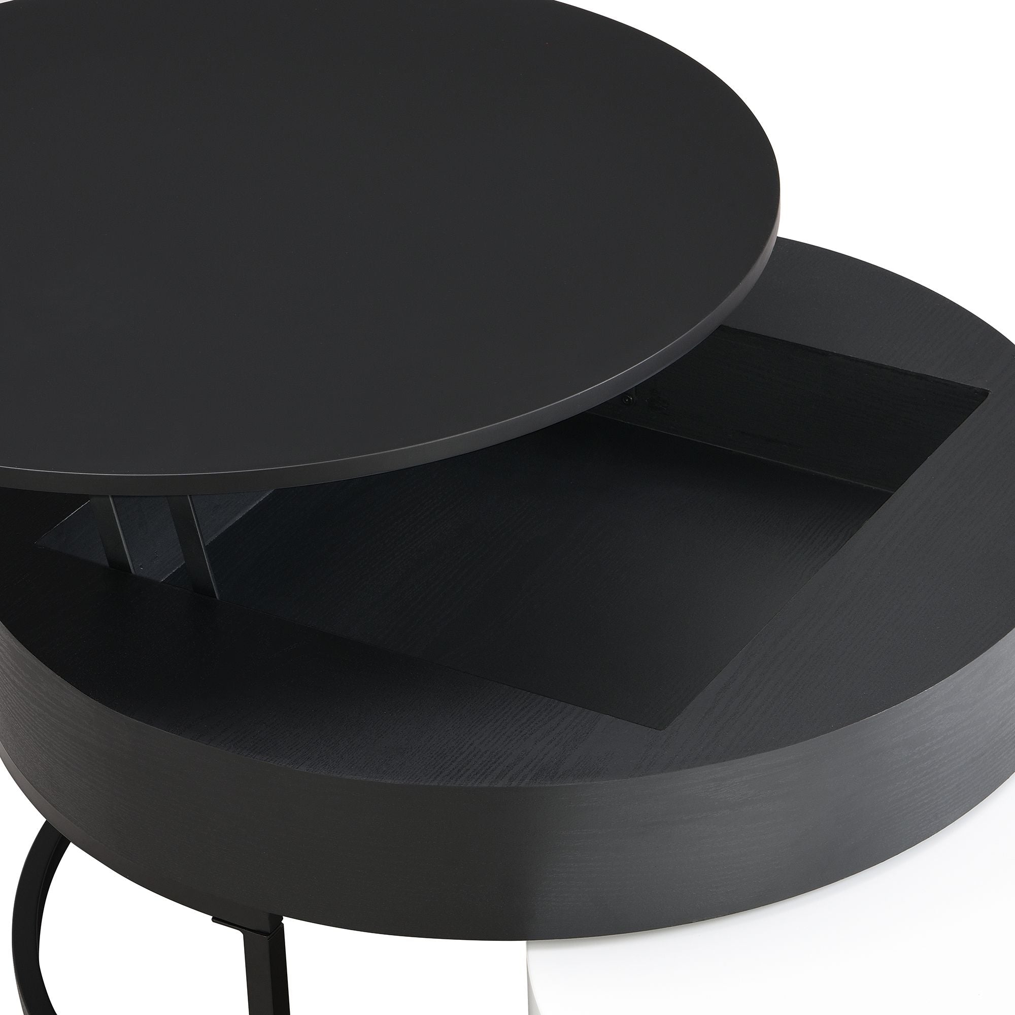 Modern Round Lift-top Nesting Coffee Tables with 2 Drawers White & Black