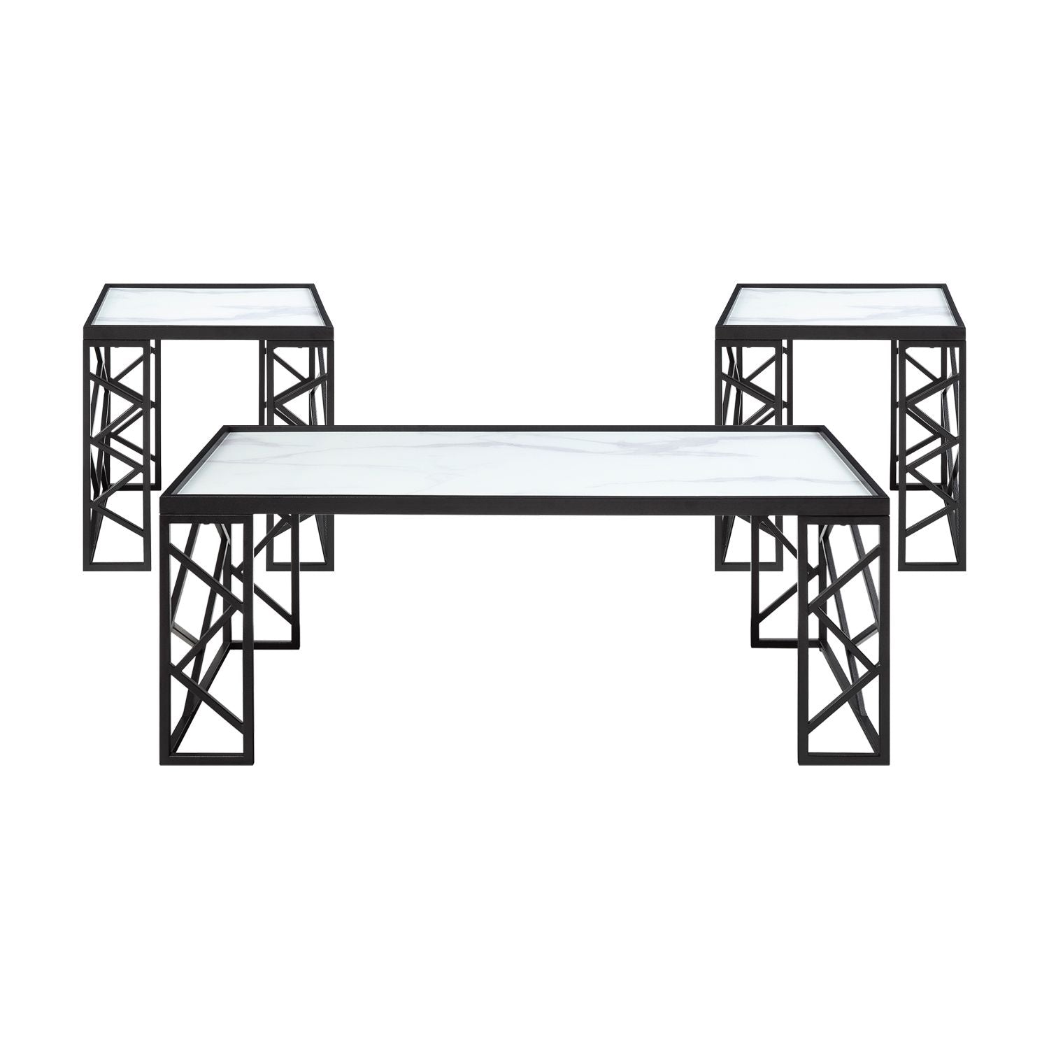 Occasional 3pc Tables Set Tempered Glass Top Coffee Table and End Tables Black Metal Frame Living Room Furniture