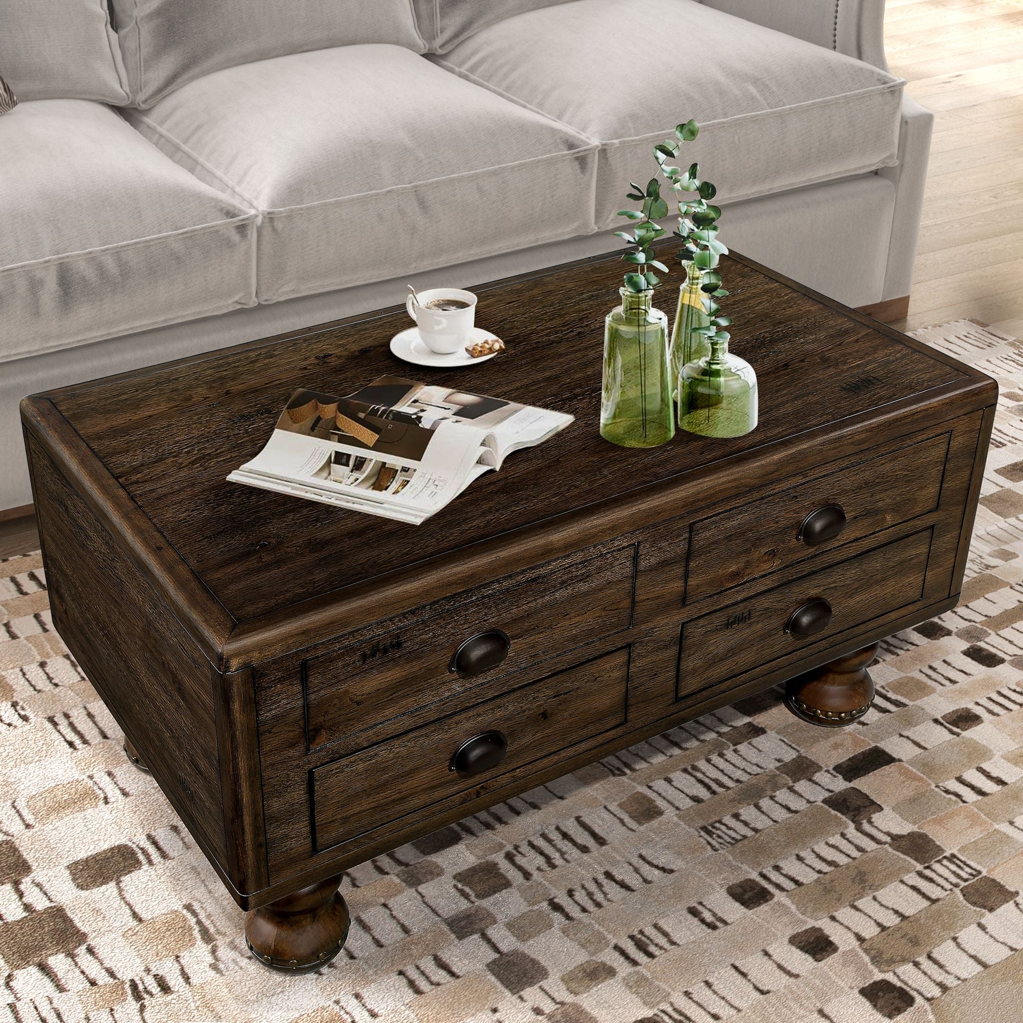 [Large Storage Design] This vintage distressed rectangular coffee table comes with 4 drawers, and the end table is with 1 drawer, that can hold 17.64 pounds individually. The capacity of tabletop is 330LBS(coffee table), 176 lbs(end table).
