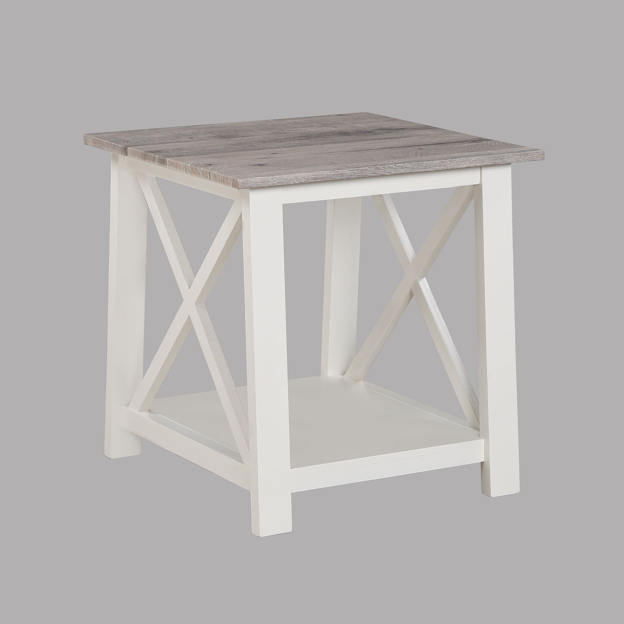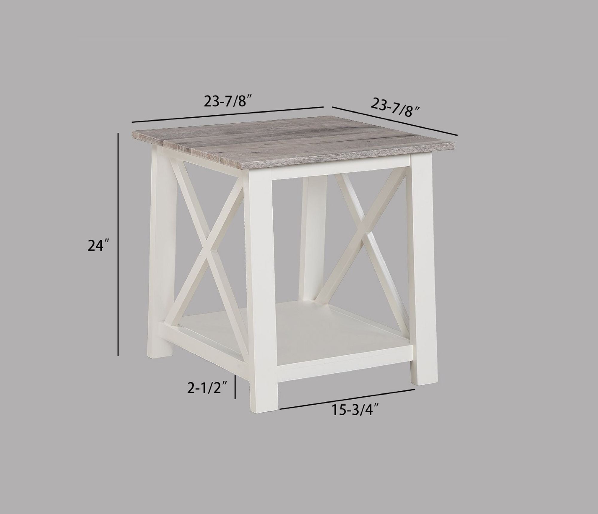 White Brown 3-Piece Set Table Top Cocktail Rectangular Coffee Table and Two Matching Square End Tables Living Room Wooden Furniture