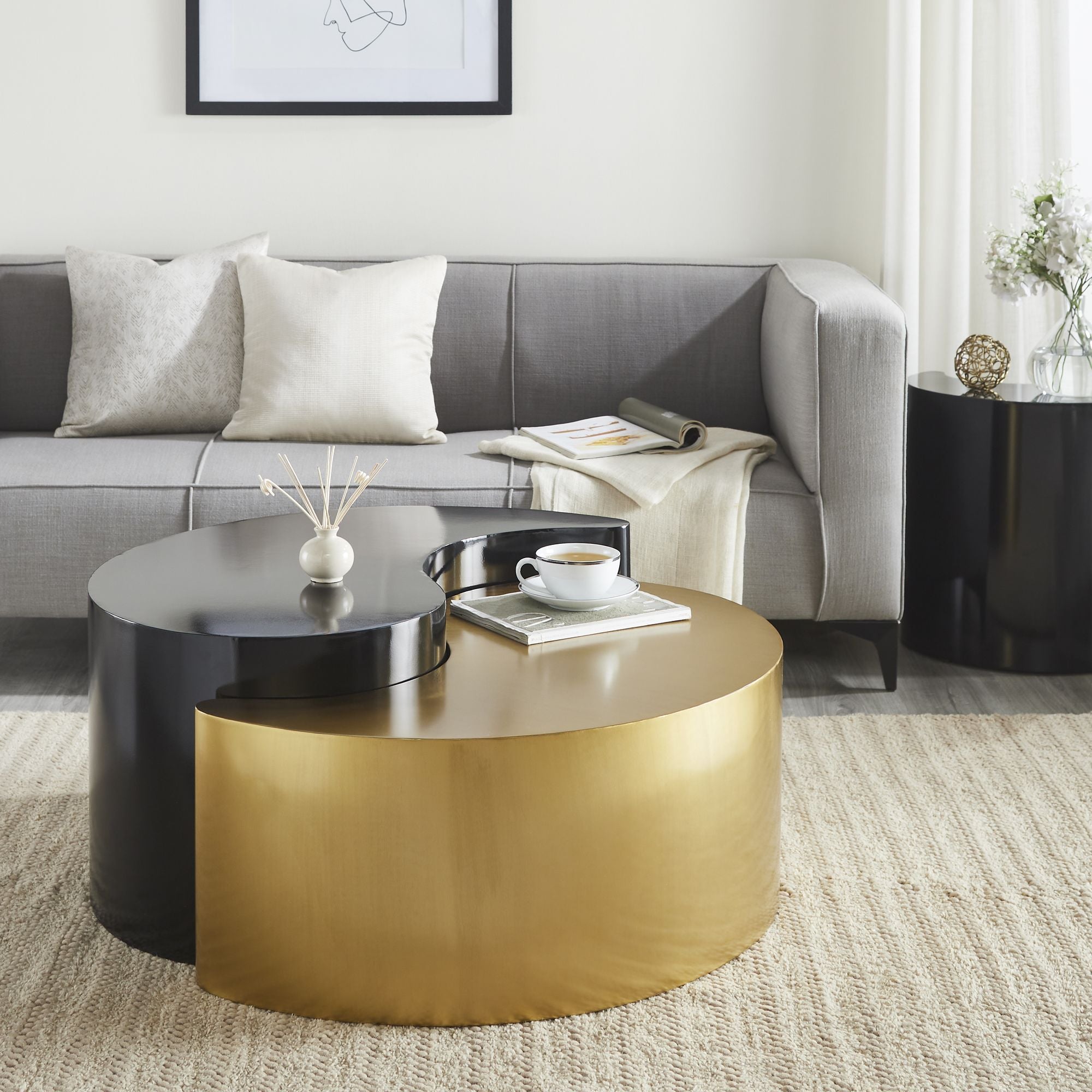 Ying Yang Modern & Contemporary Style 2PC Coffee Table Made with Iron Sheet Frame in Black & Gold