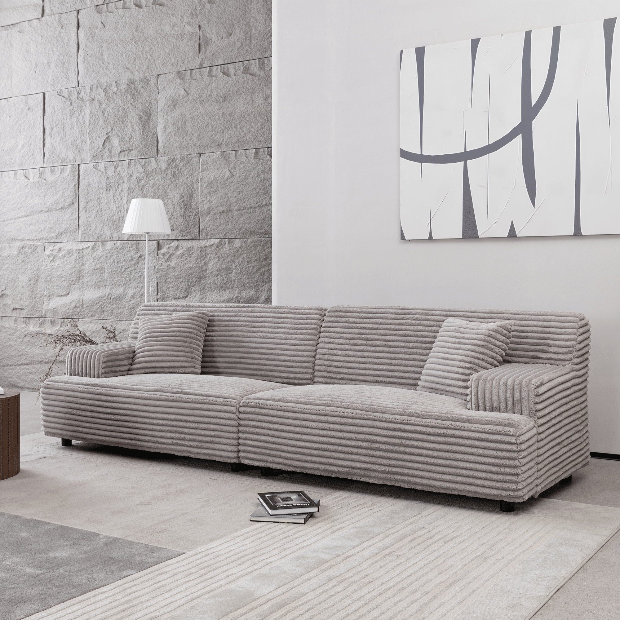2291-G Modern sofa, comfortable cloud sofa soft plush corduroy interior with square armrests, living room, bedroom,Grey sofa