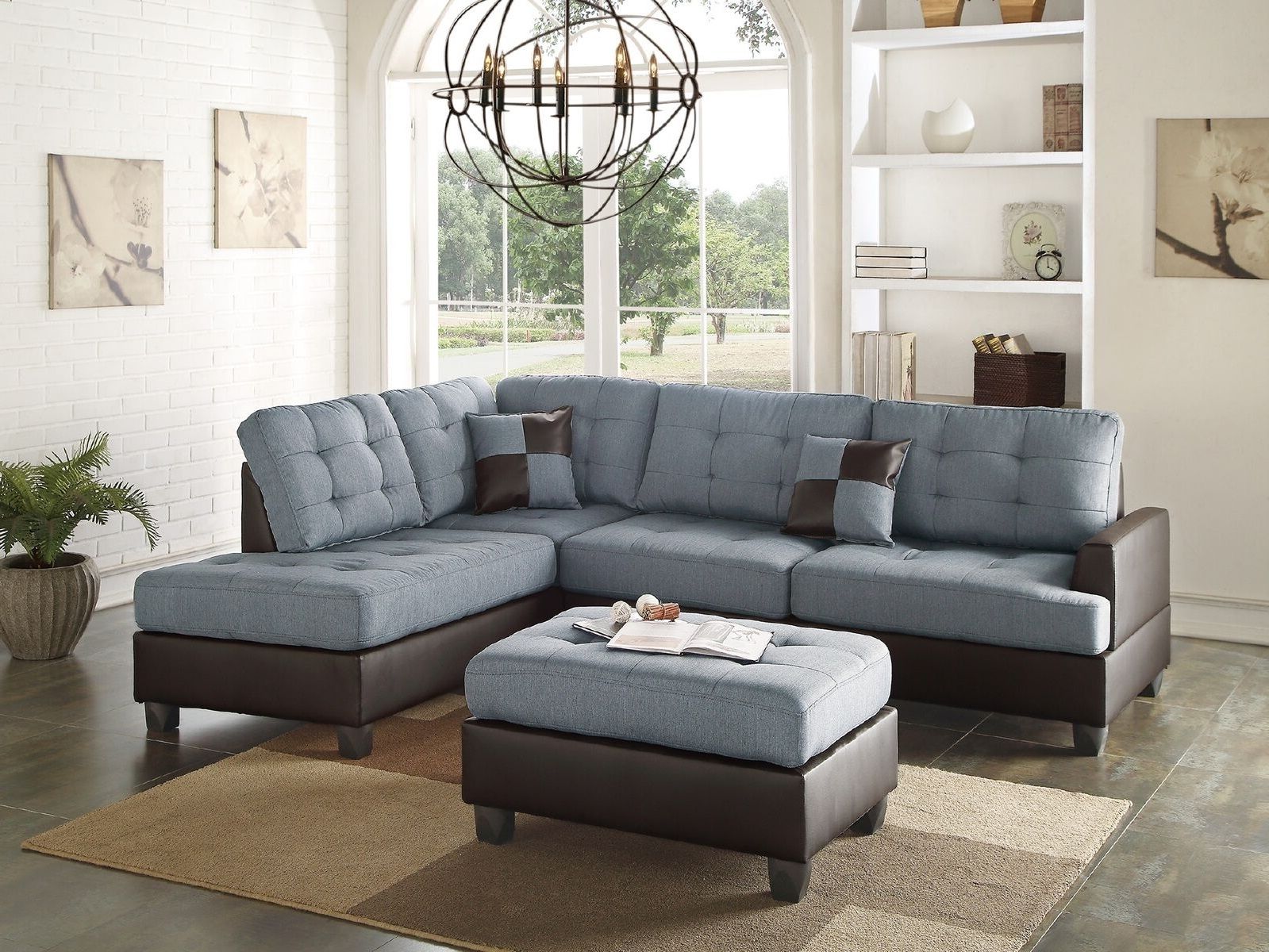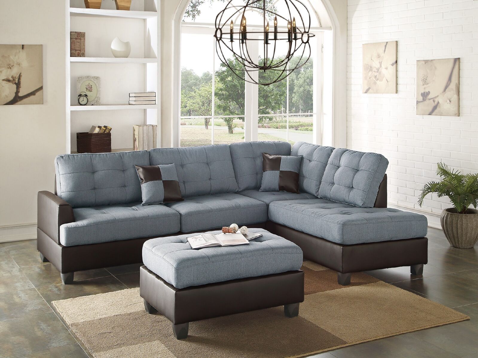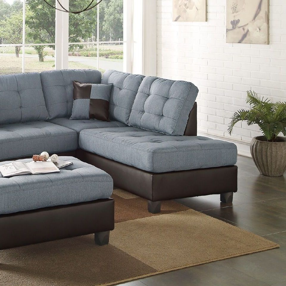 Listing Include : 3pcs Sectional Sofa (Reversible L/R Chaise, Sofa And Ottoman) Only.