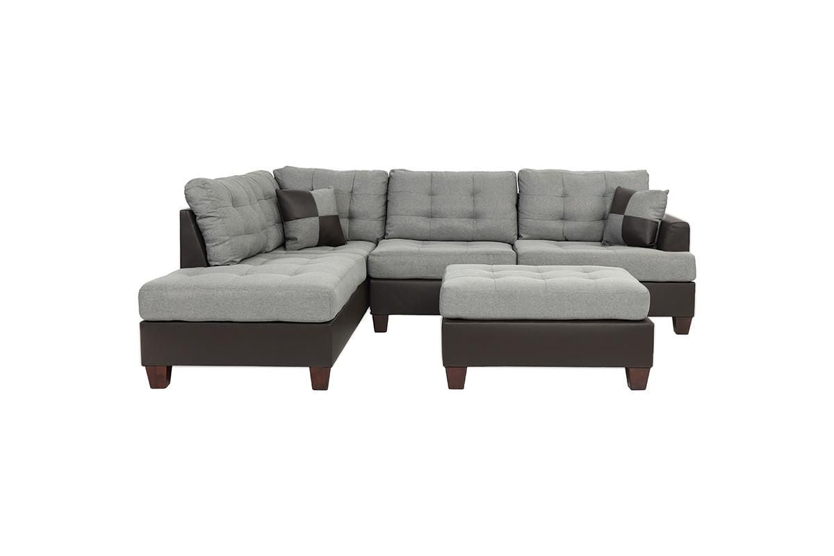 Contemporary Sectional Sofa Grey Polyfiber Linen Like Fabric Cushion Tufted Reversible 3pc Sectional Sofa L/R Chaise Ottoman Living Room Furniture Pillows