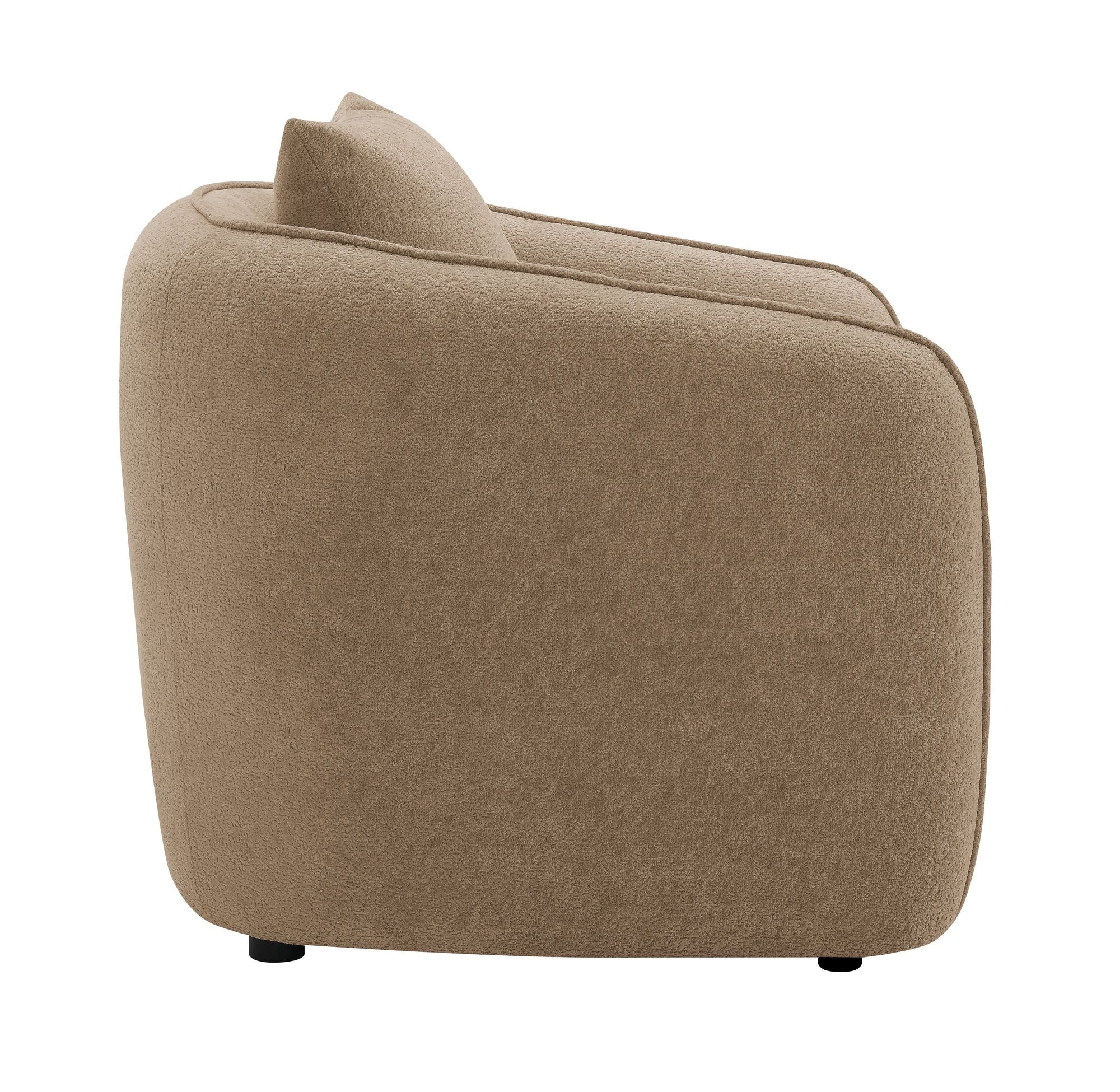 This elegant chair showcases a warm brown chenille upholstery that exudes both comfort and style. The chair comes with 1 matching color toss pillow.