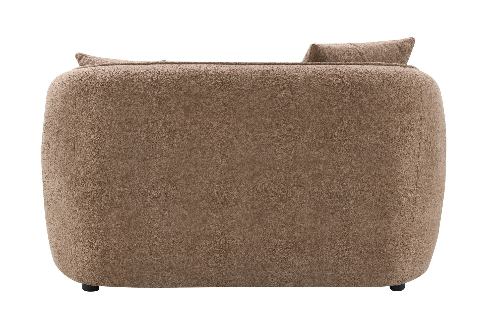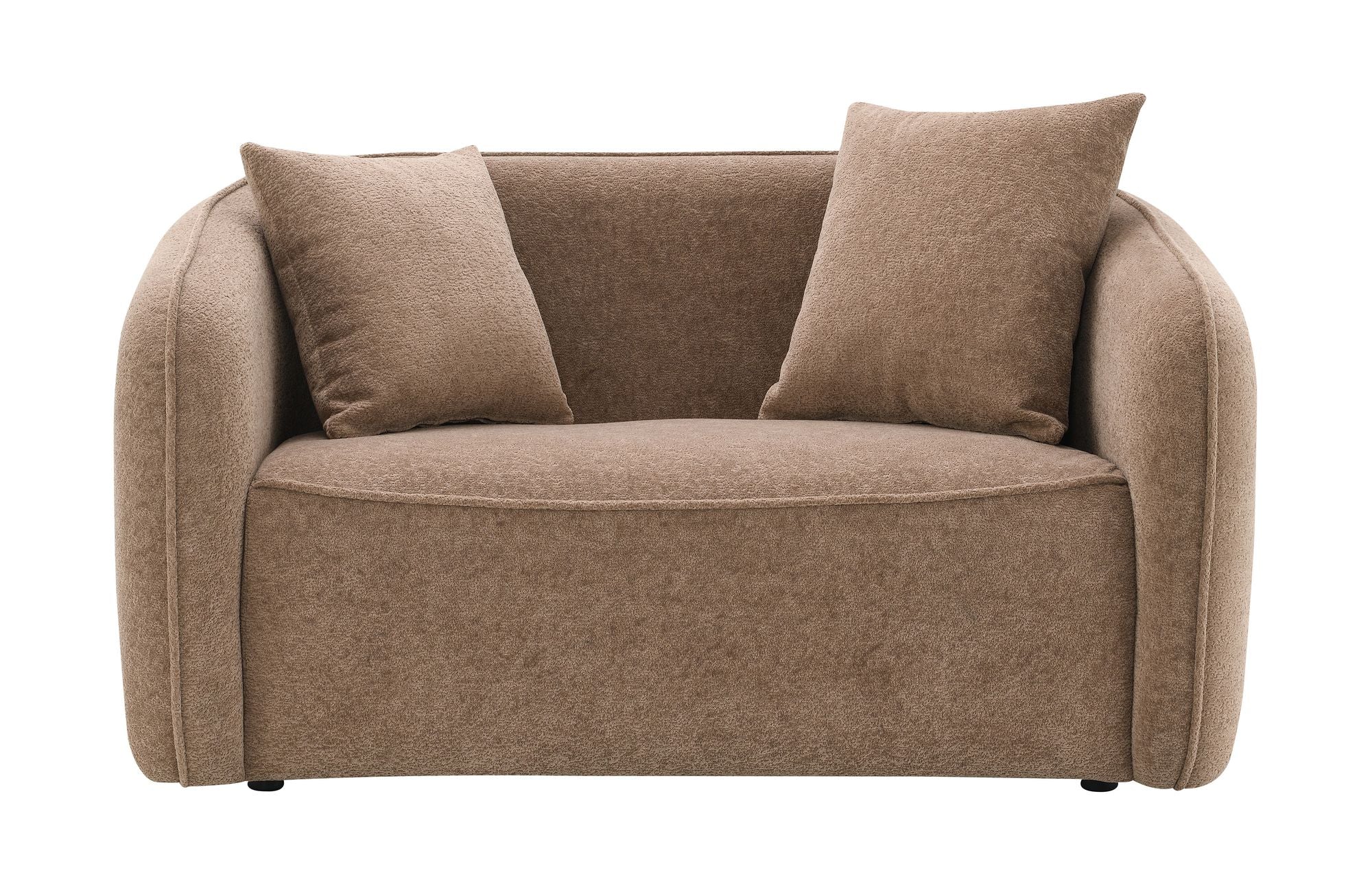 Experience comfort and style with this elegant loveseat, crafted in a rich brown chenille fabric that adds warmth to any living space. Loveseat comes with 2 matching color toss pillows.