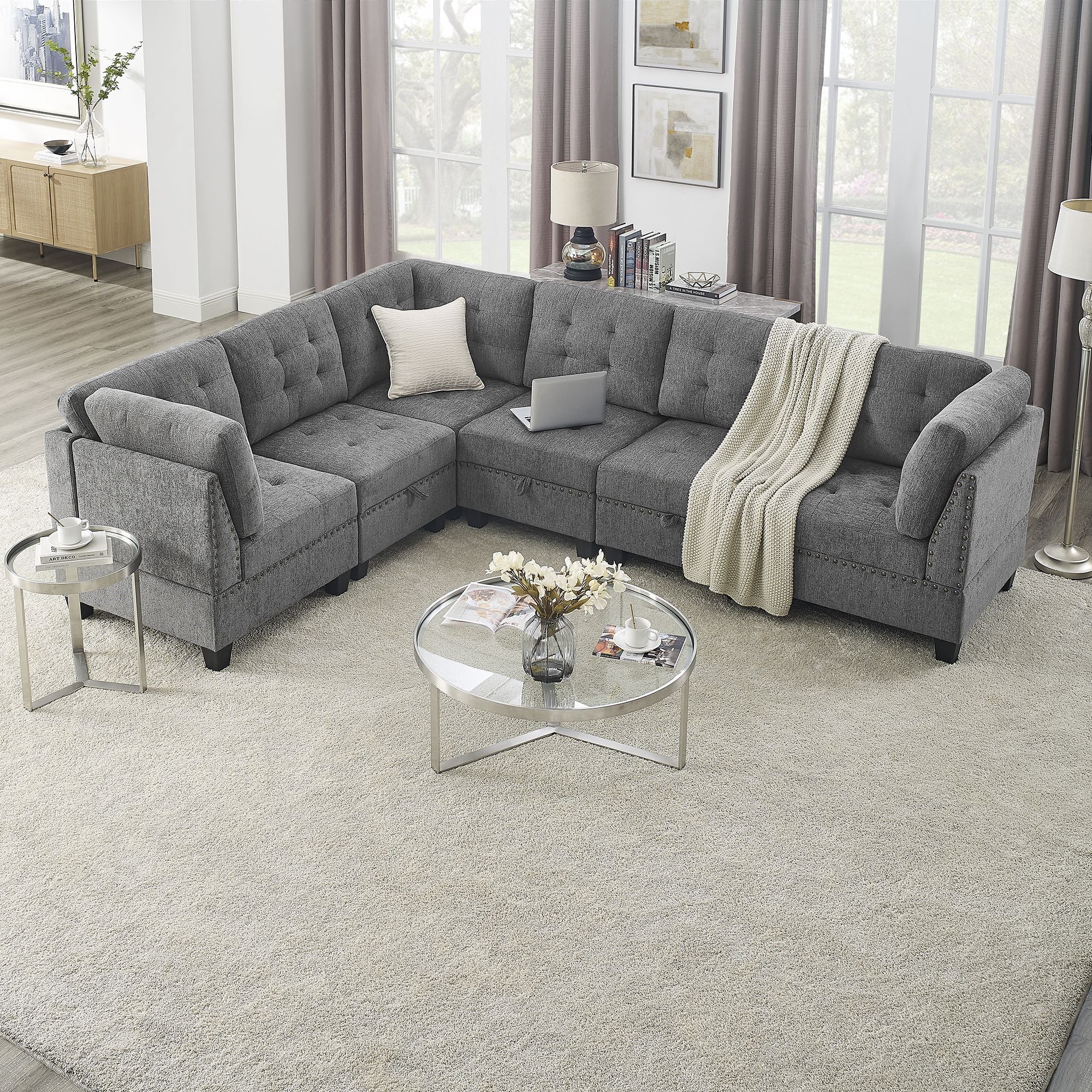 [Durable Couch] Our modular sectional sofa is based on a solid hardwood frame with durable memory foam cushions built into the fabric, Plastic black legs perfectly support the entire sofa and can be used for many years.