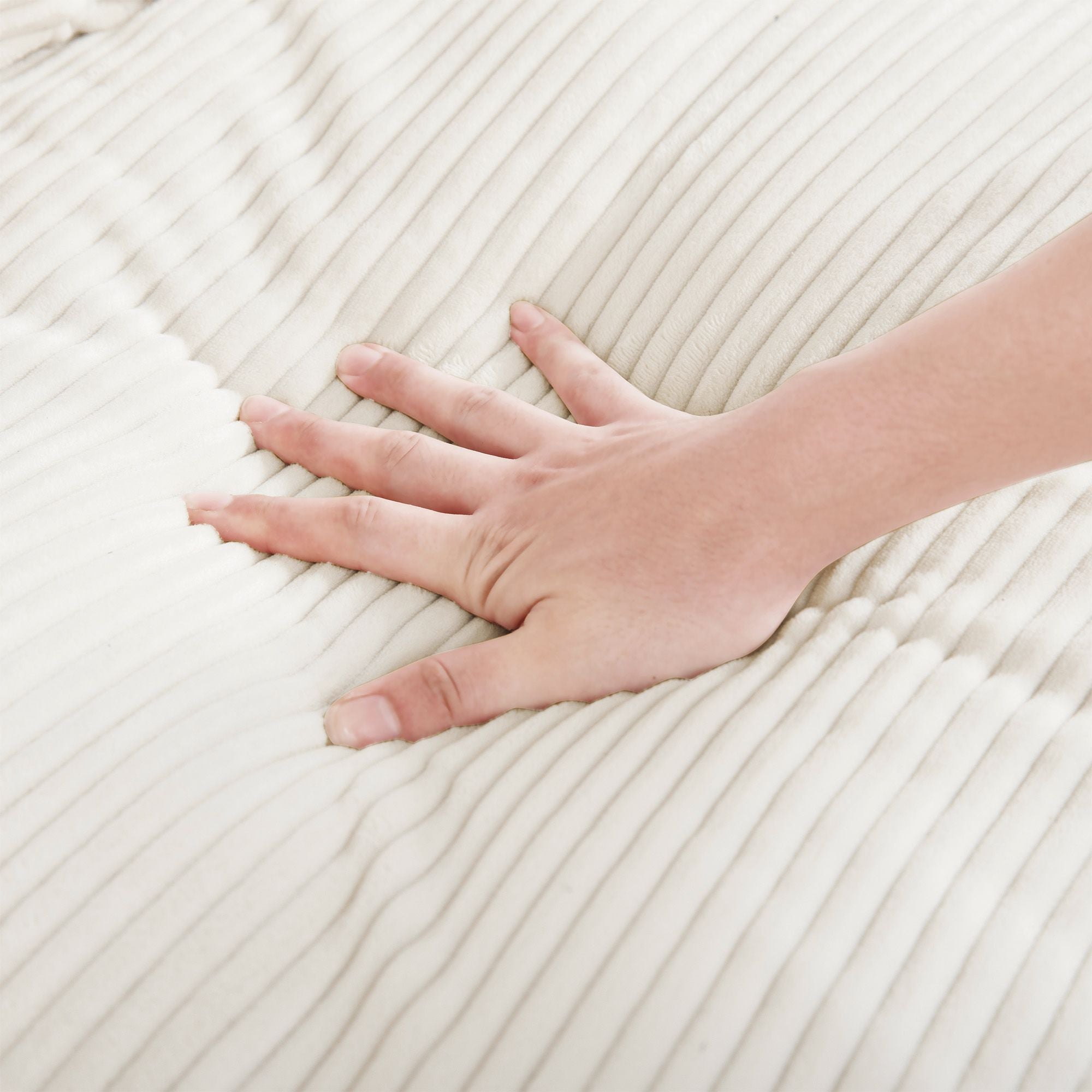 Superior comfort - extended deep seats allows you to sit cozy on the sofa, soft waist pillow to offer excellent support to your waist, ergonomic seat angle eliminating your fatigue of the day and bringing a full sense of security and comfort. Back and seat cushion are upholstered with comfortable high-density foam cushions for ultimate comfort and support.The back cushions and seat cushions are soft and fluffy, and the stripped corduroy fabric gives it a cloud-like wrapping feel.
