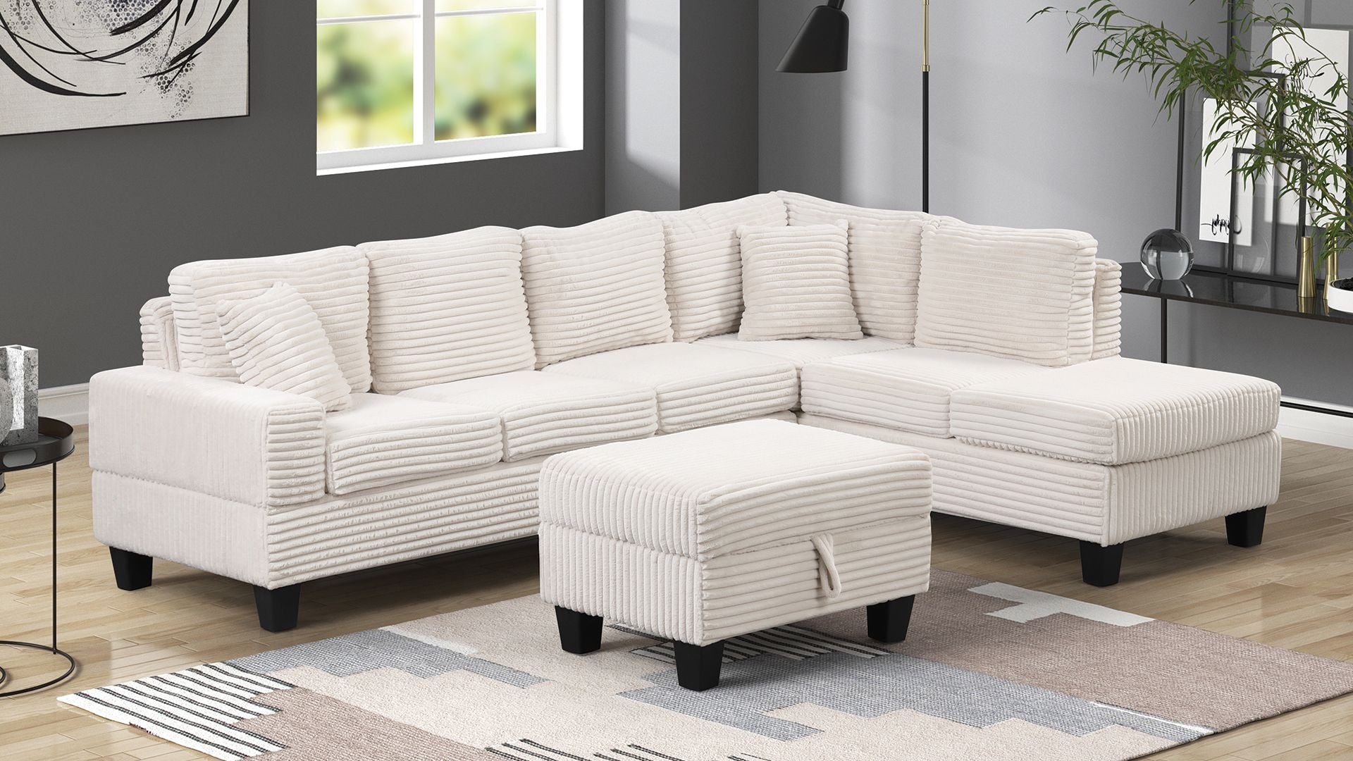 Includes a storage ottoman, offering functional space-saving solutions
