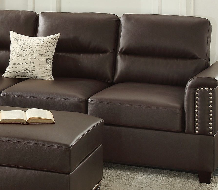New Contemporary 3-PCS Reversible Sectional Set Living Room Furniture Espresso Faux Leather Couch Sofa Chaise Ottoman