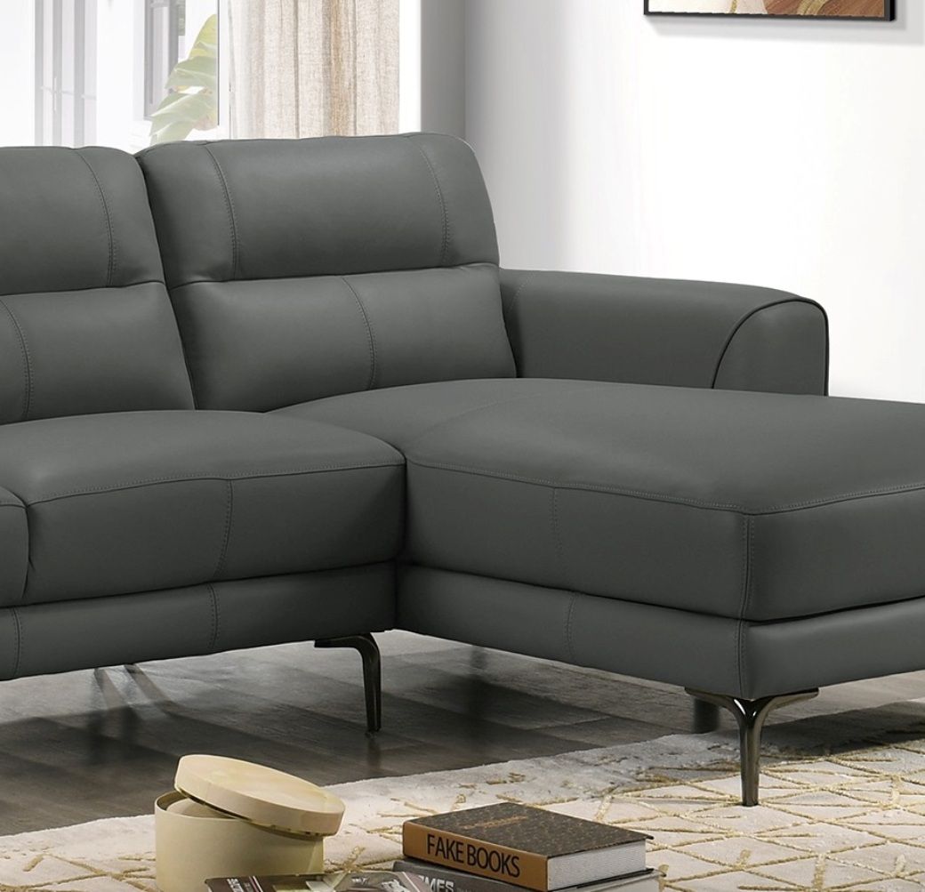Top Grain Leather Anthracite 2pc Sectional Set Right Facing Chaise Left Facing Sofa Living Room Furniture