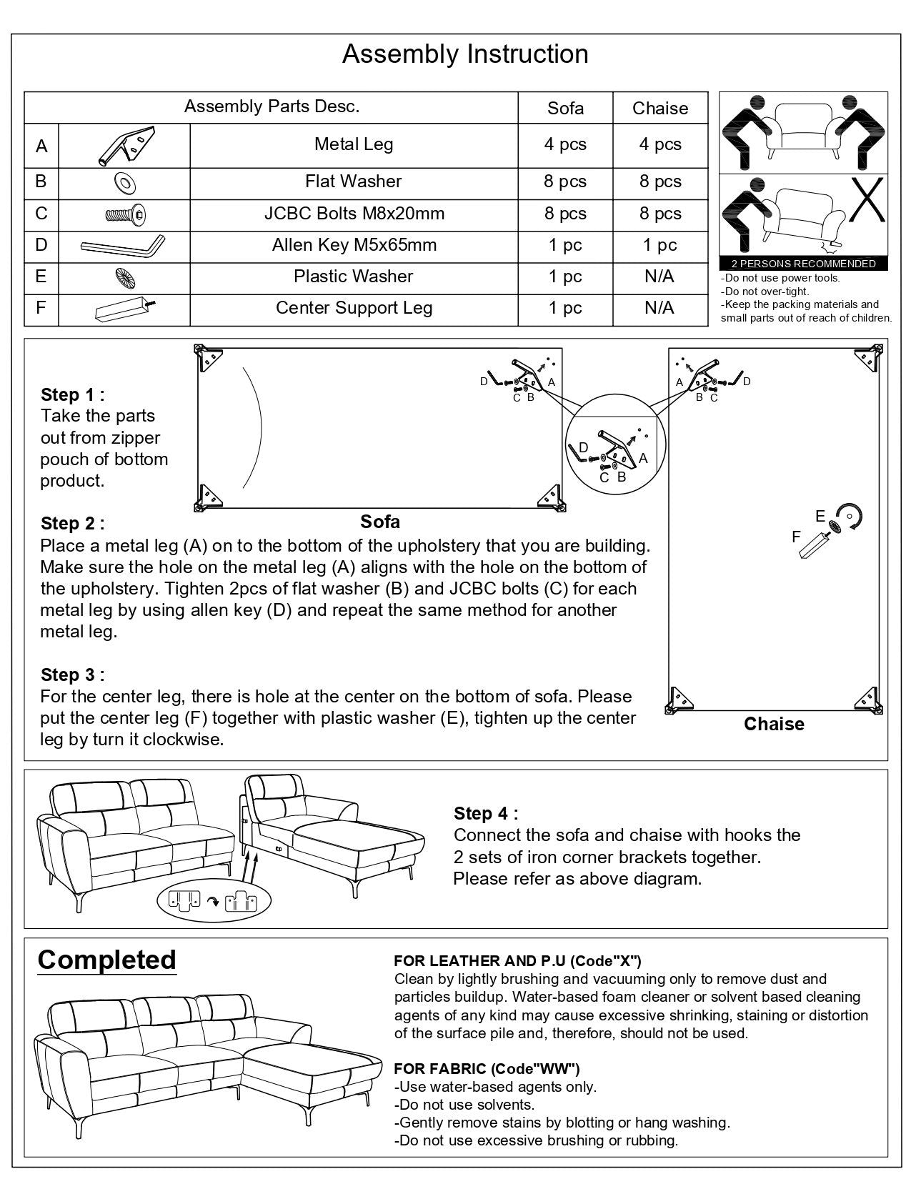 2pcs Sectional Sofa (Right Facing Chaise, Left Facing Sofa) Only.