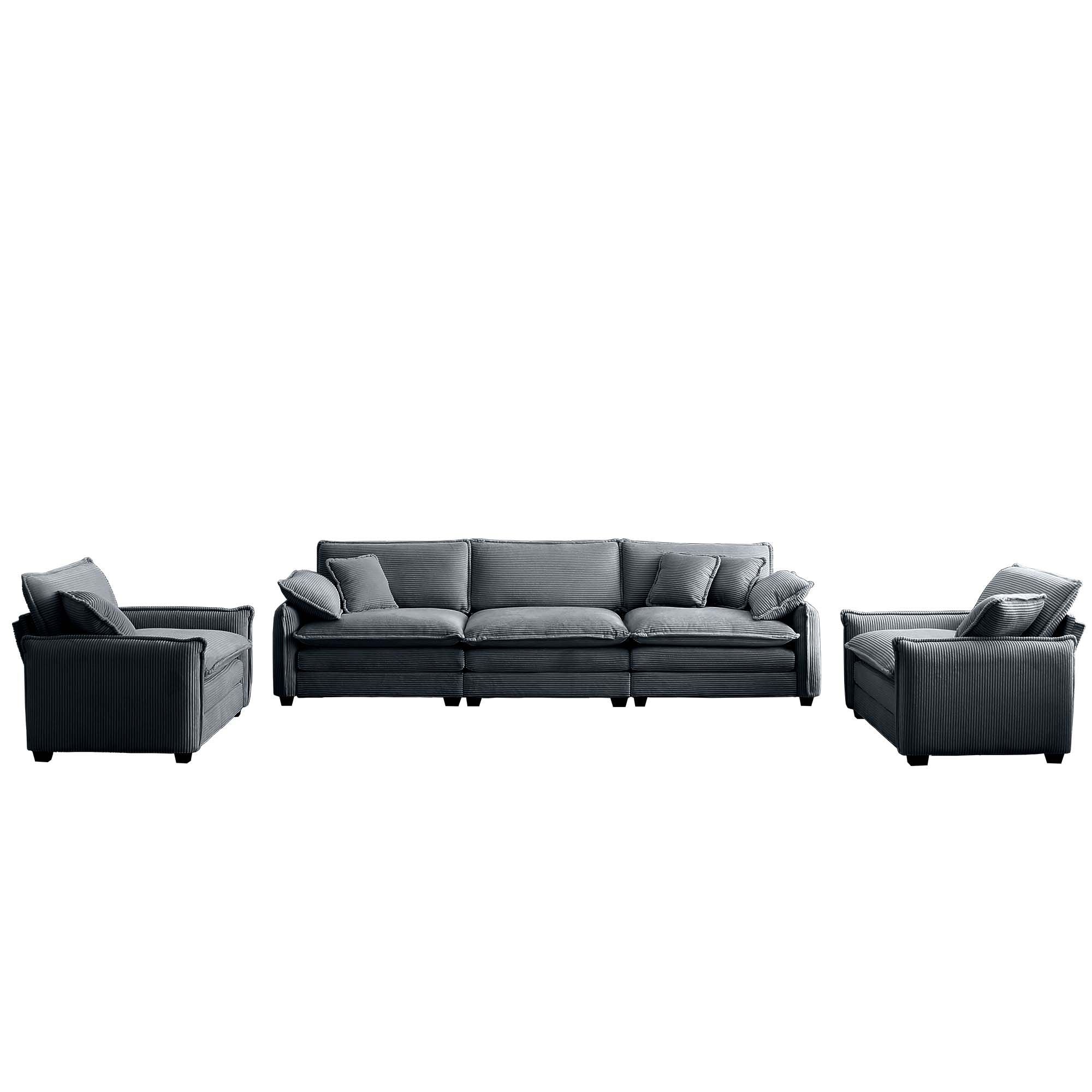 Warm and Cozy Sofa Set with Soft Cushions and Pillows, Home Theater Style Sofa Set Consisting of a 3-Seater Sofa and Two Single Sofas inGrey Corduroy Fabric