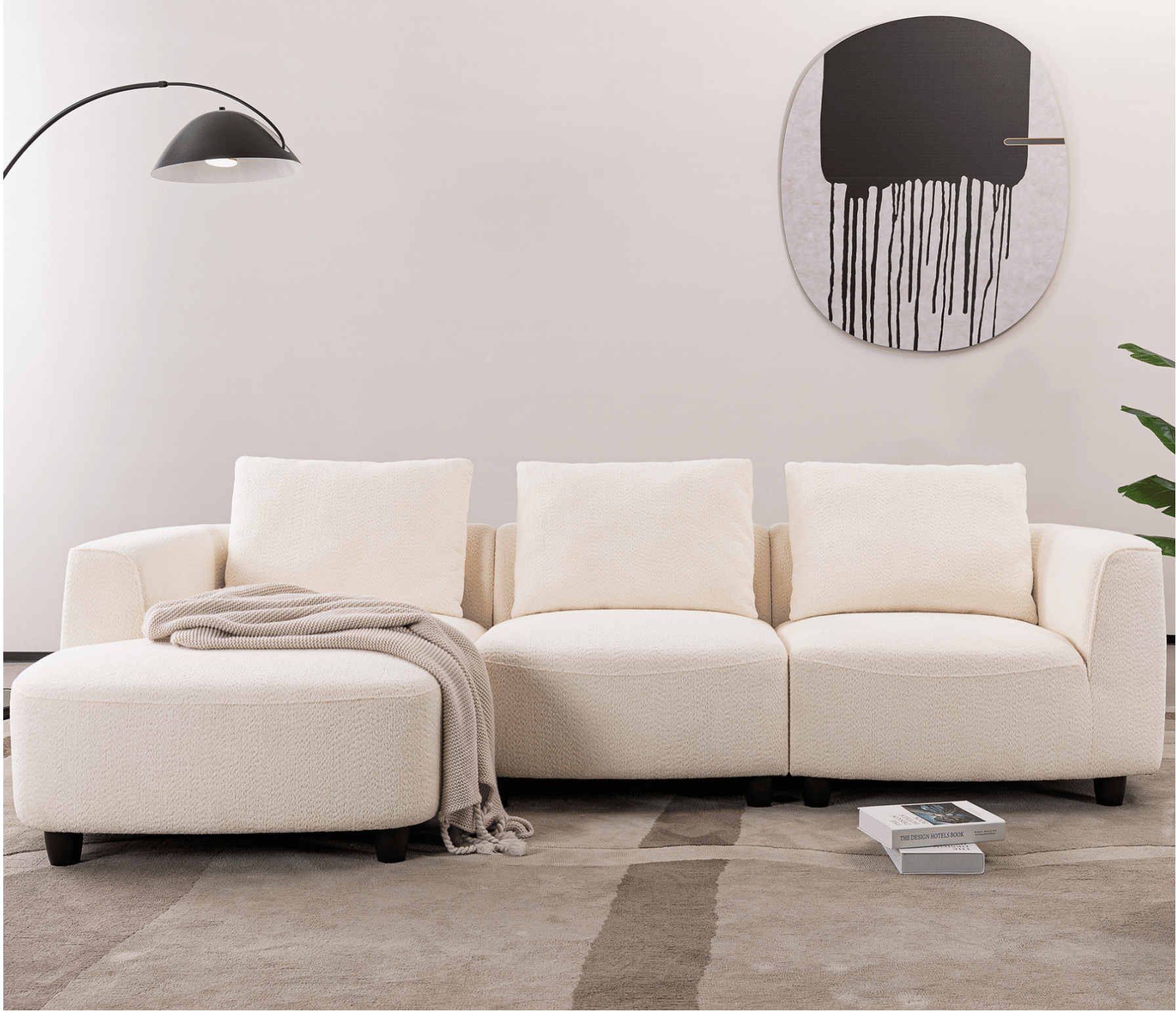 The comfortable sofa in the living room consists of a solid wood frame and stable solid wood legs, ensuring that every part of the modern sofa is sturdy. The wooden legs of the sofa protect the floor from scratches, and you can rest and read comfortably while lying comfortably on the sofa.