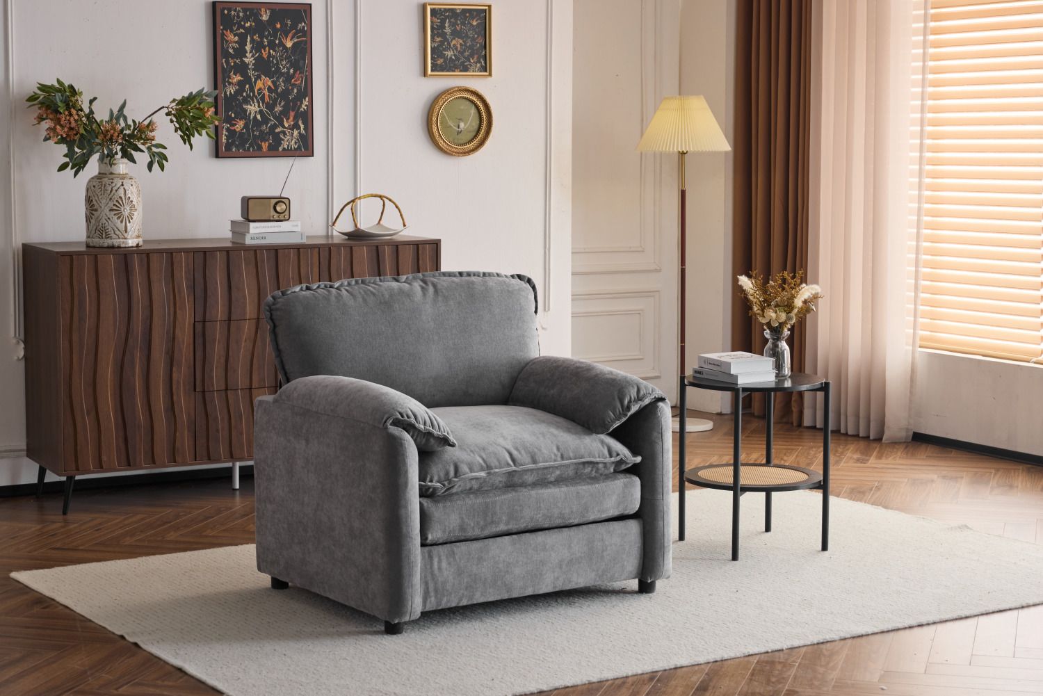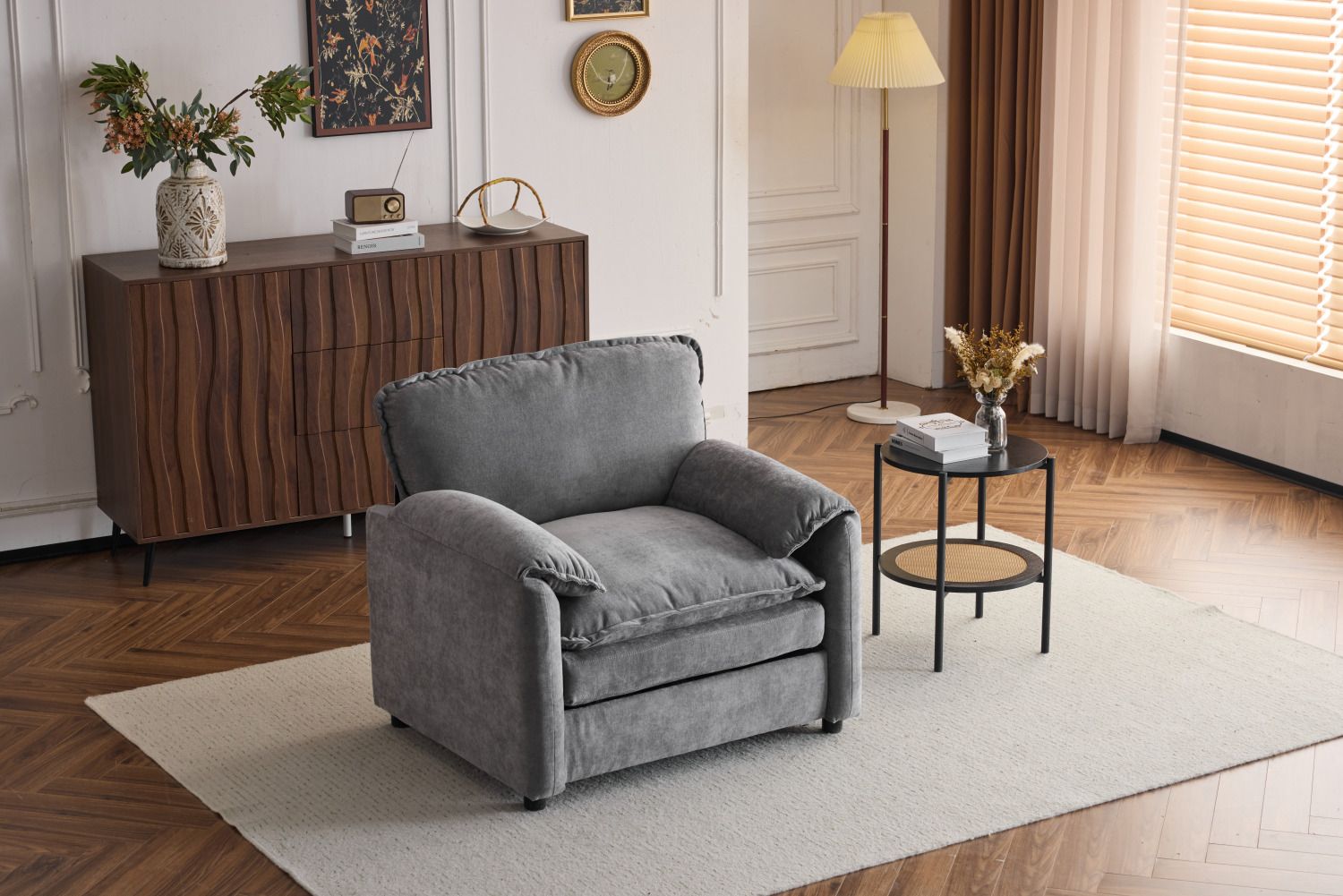 Versatile Design - With clean lines and furniture-style armrests, this single chair complements a variety of home decor from traditional to modern, making it a perfect addition to any space.Easy to Assemble - Sent in a single package, it comes with the necessary tools and assembly instructions to help you assemble the single sofa chair easily. Wipe it regularly with a soft dry cloth to prevent dust accumulation.