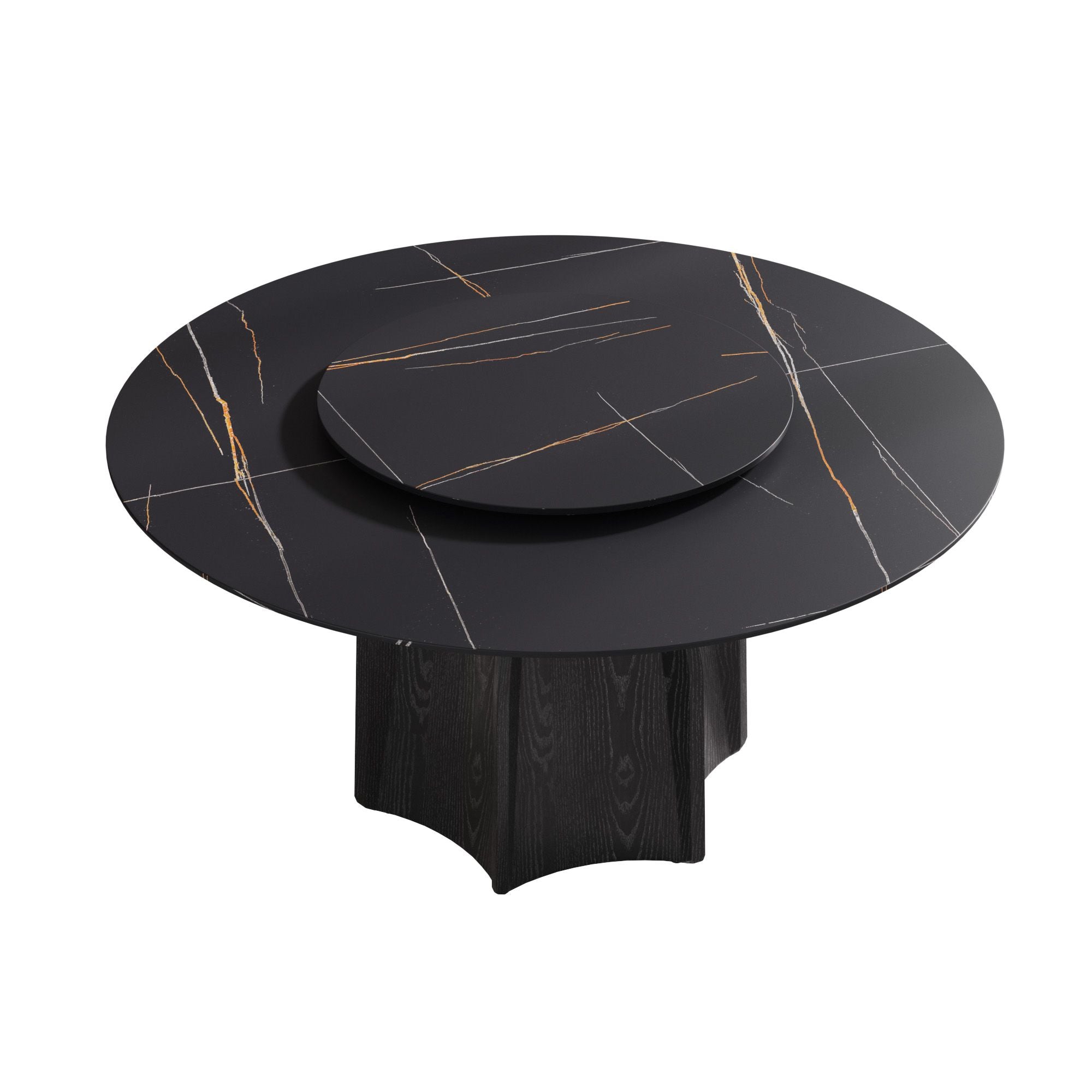 59.05" Round Marble Dining Table with Black Textured Solid Wood Base, Artificial Marble for 6-8 People, 31.5"Black Artificial Stone Turntable,Black (Dining Table Only)