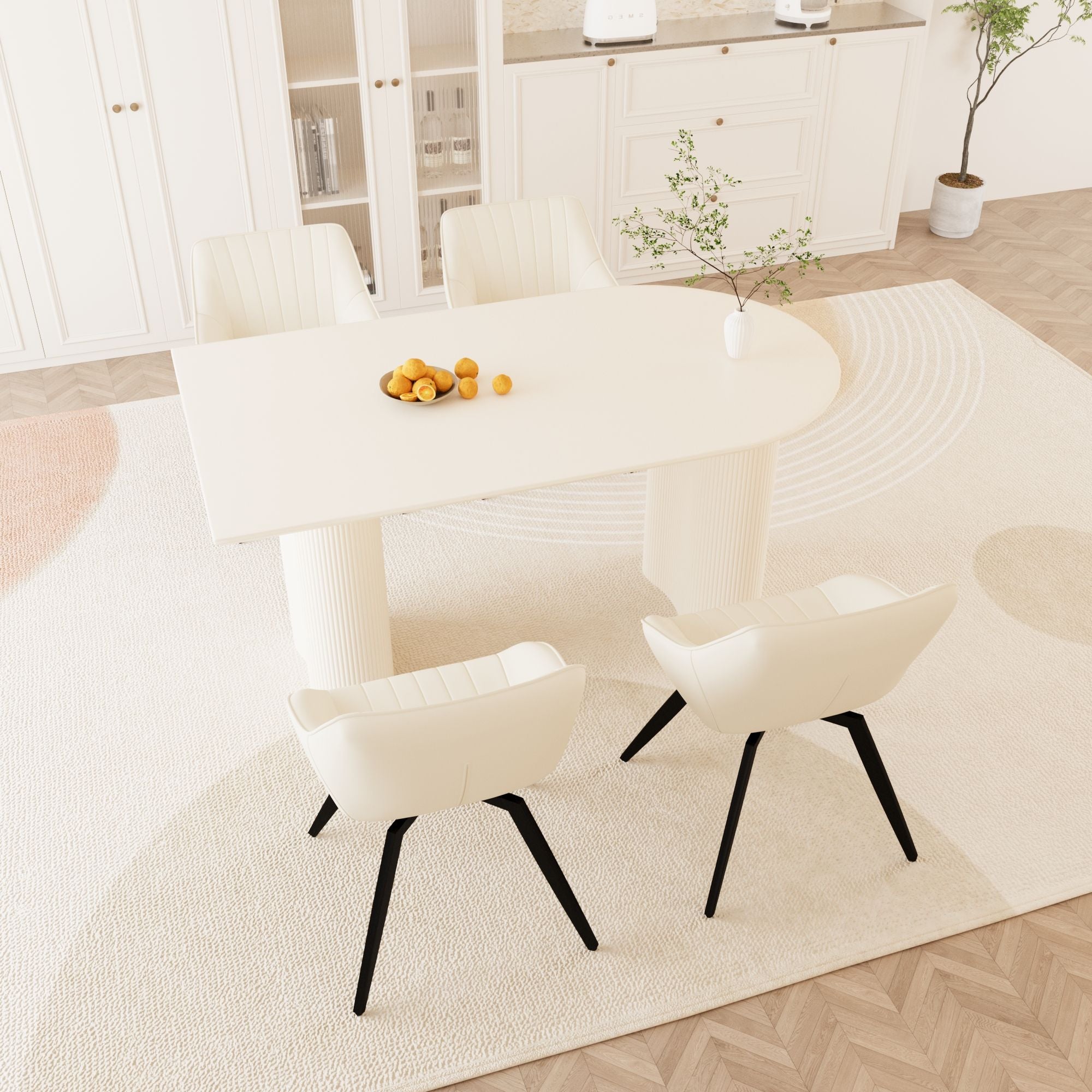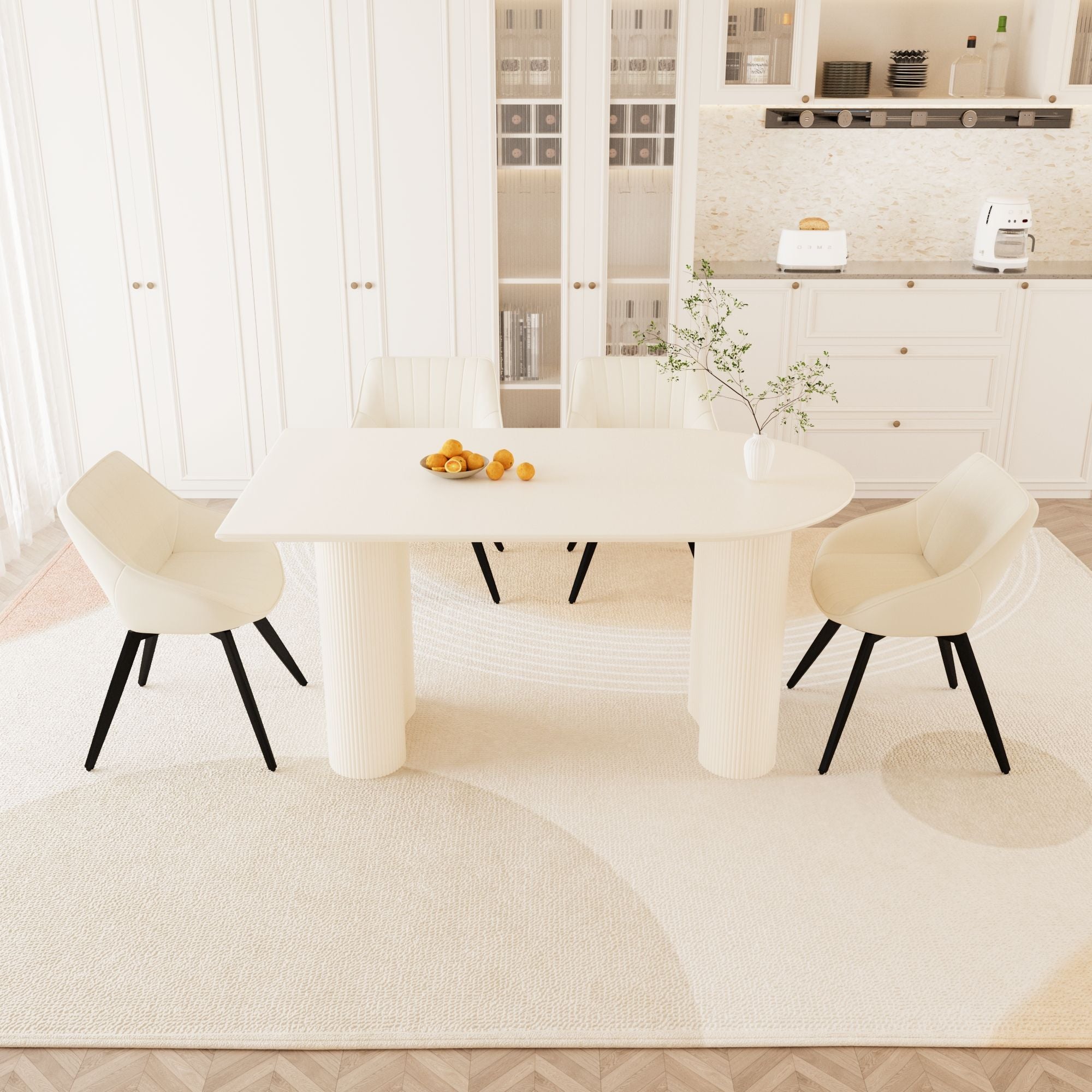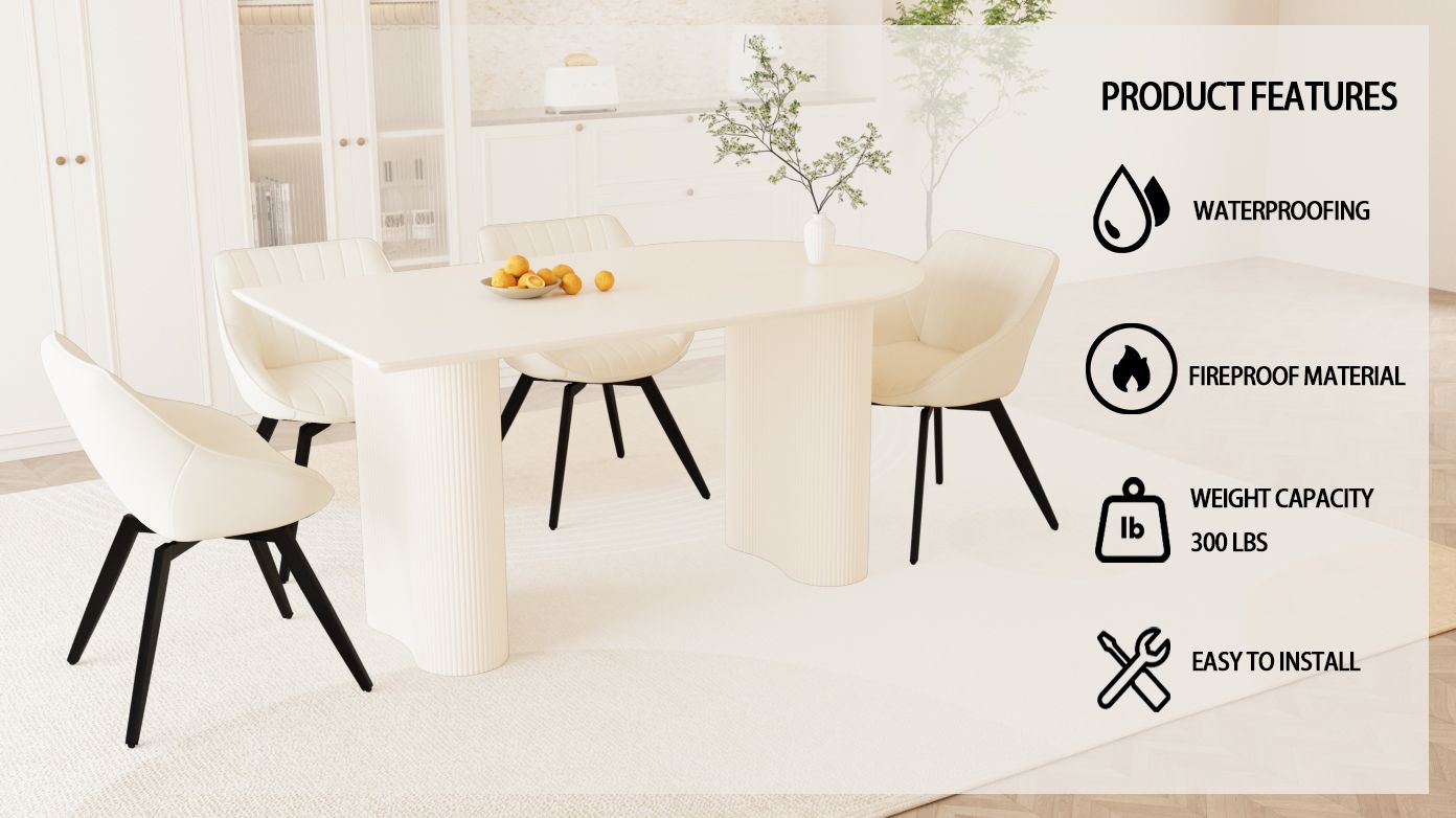 63" medieval modern cream style MDF dining table and PU dining chair set, 4 sets of black metal leg dining chairs, suitable for kitchen&home