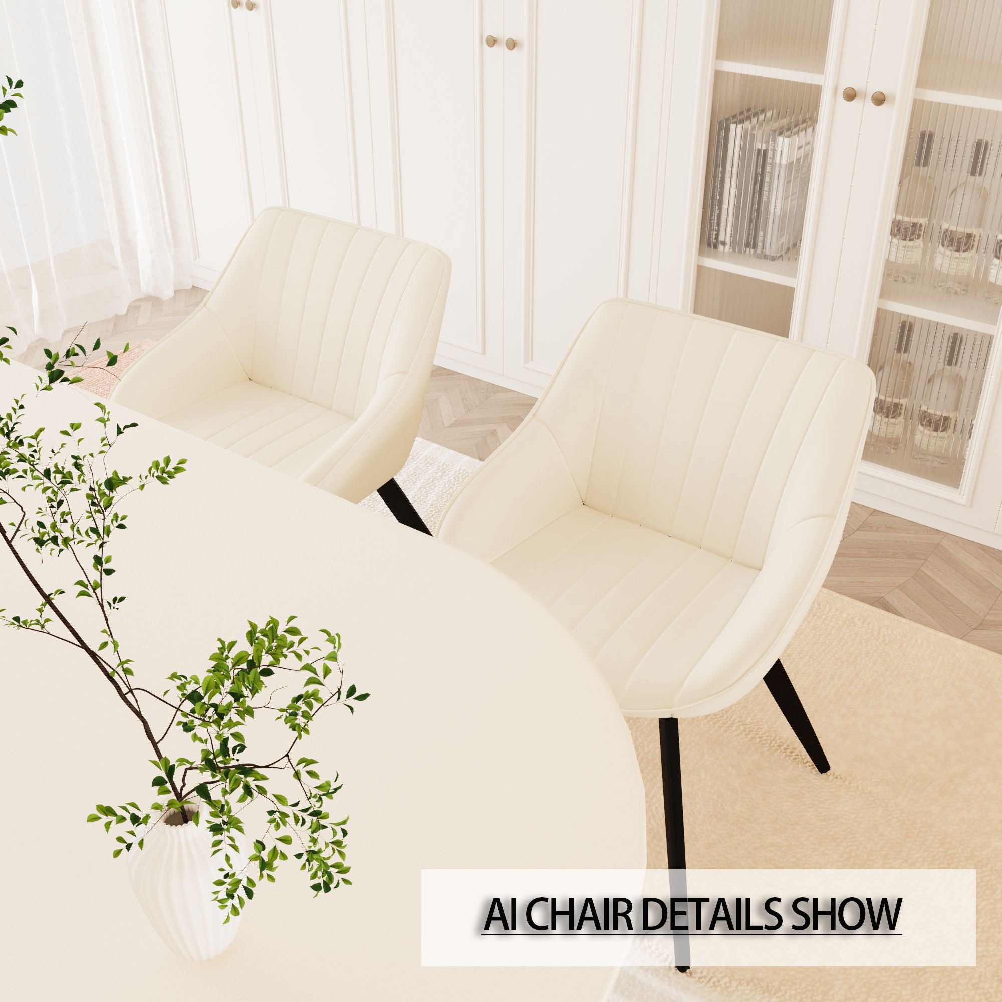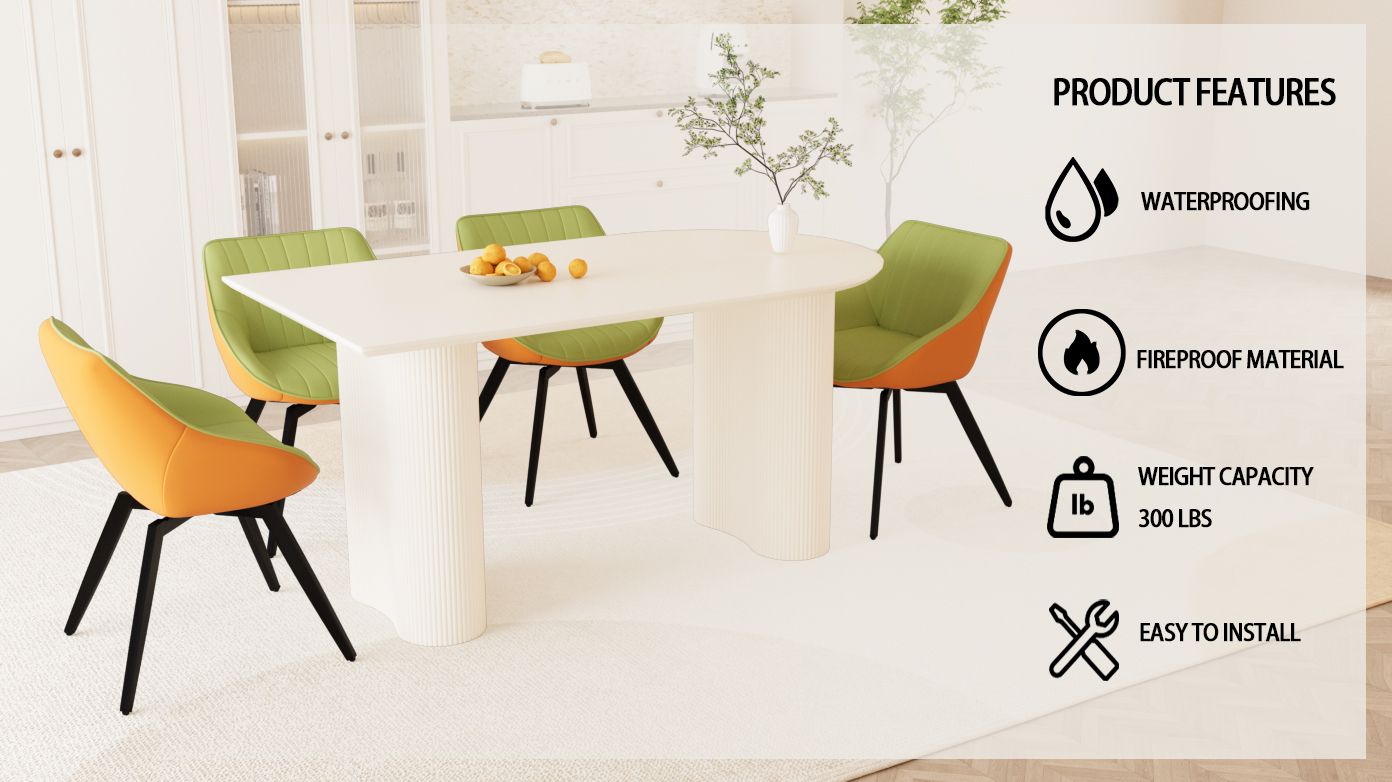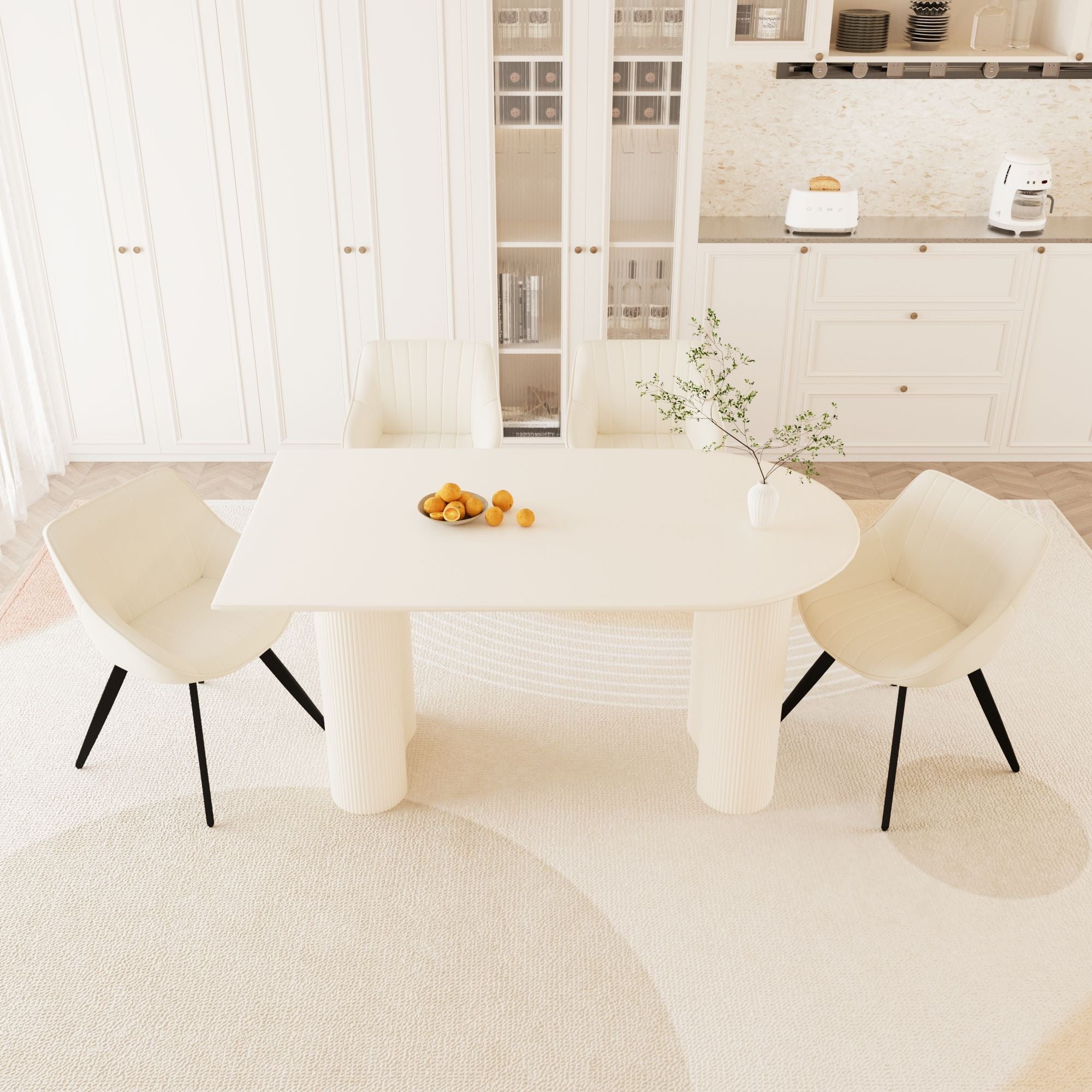 63" medieval modern cream style MDF dining table and PU dining chair set, 4 sets of black metal leg dining chairs, suitable for kitchen&home