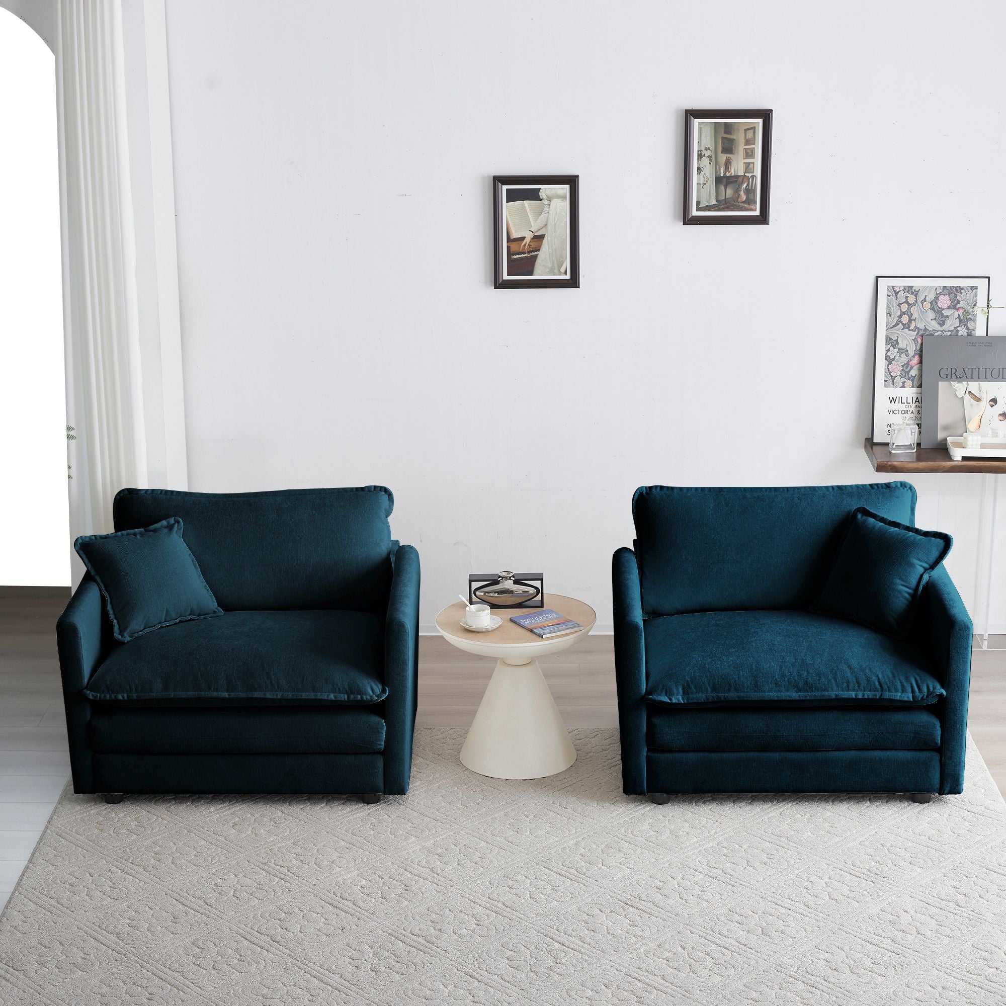 Accent Chair Set of 2, High-end Chenille Upholstered Armchairs, Living Room Side Chairs with Toss Pillow, Blue Chenille