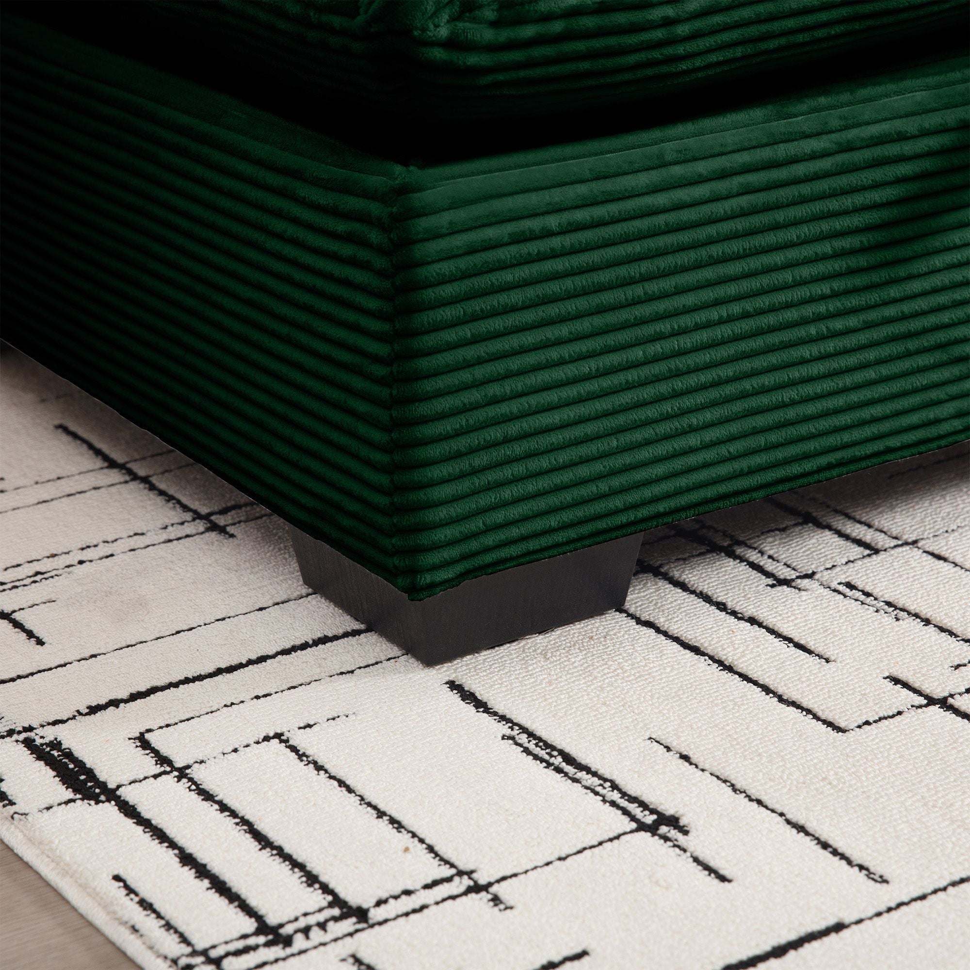 Big Deep Seat U-Shaped Corduroy Sectional Couches for Living Room, 4 Seater Sofa Couch with 2 Storage Footstool and 4 Waist Pillows (Corduroy, Green)