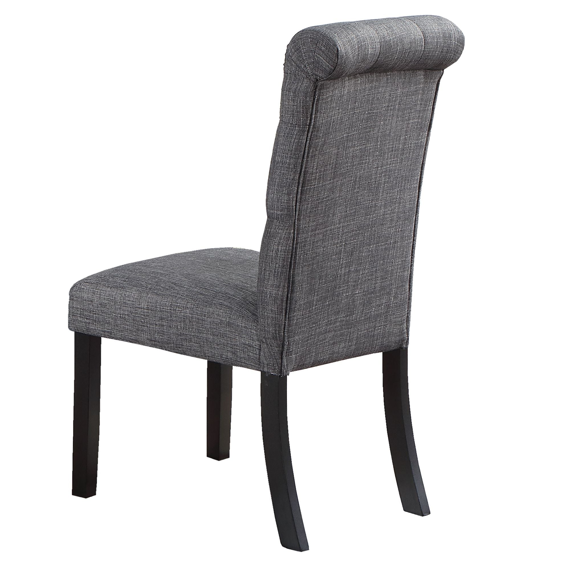 Classic Dining Room Furniture Natural Wooden Rectangle Top Dining Table 6x Side Chairs Charcoal Fabric Tufted Toll Back Top Back Chair and Storage Shelve 7pc Dining Set
