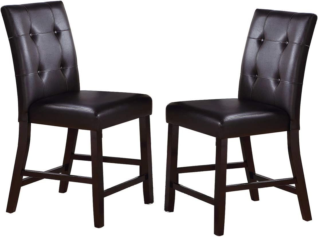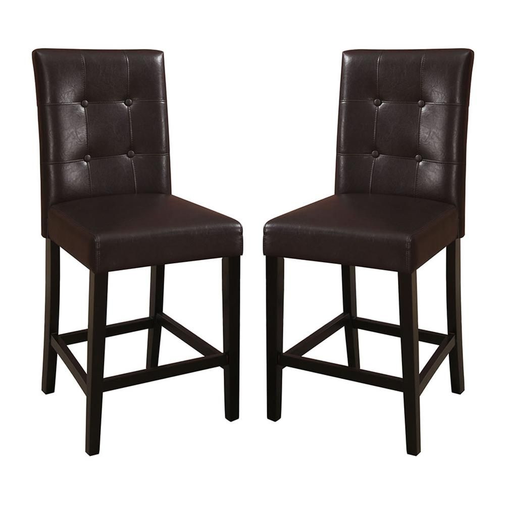 Enjoy a lovely dining experience with this counter height table featuring seating for four on a faux marble finish table framed in dark brown. Brown faux leather chairs.