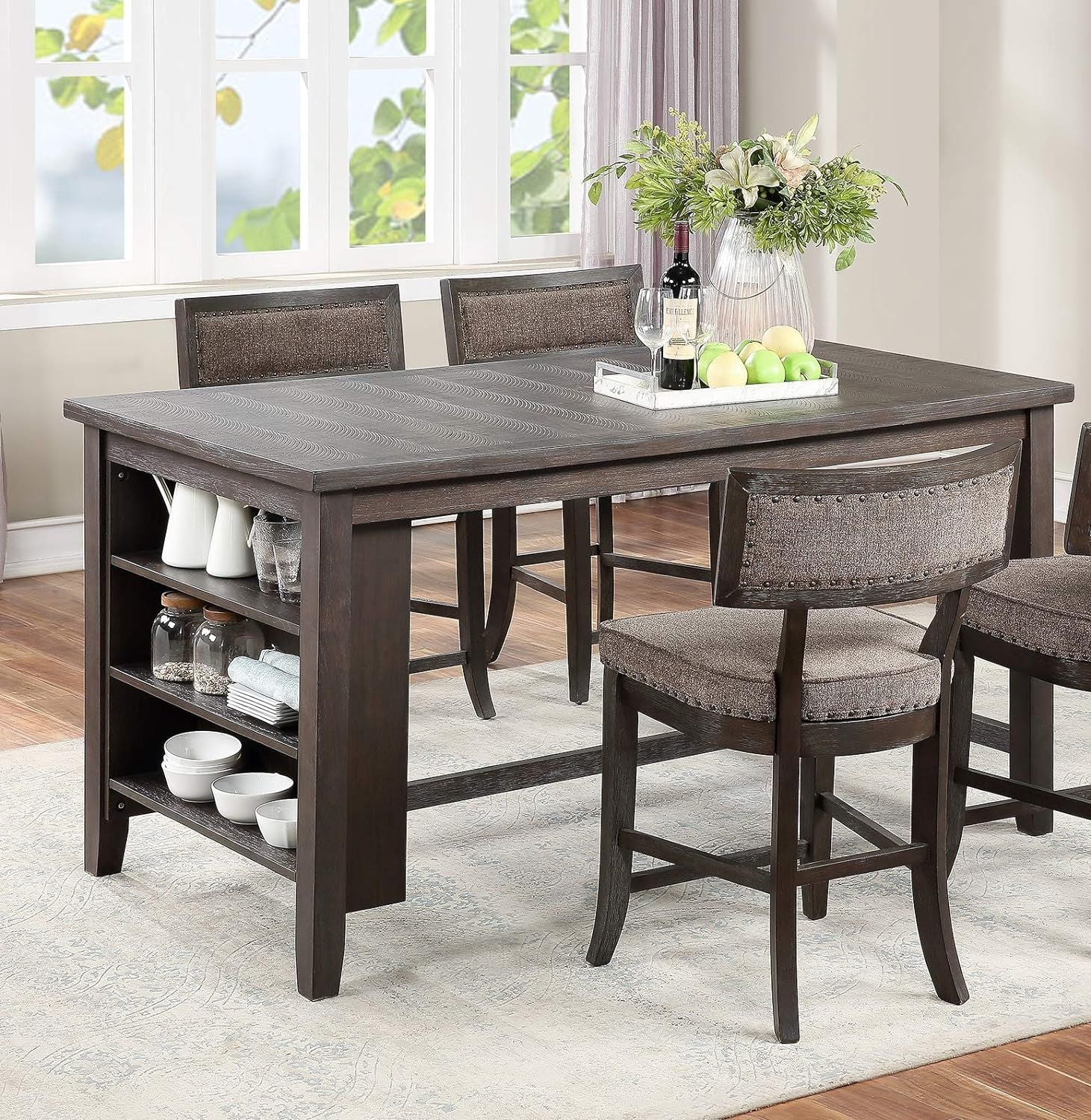 Dining Room Furniture Counter Height Dining Table w Side Shelves Rustic Espresso 5pc Dining Set Table and 4x High Chairs Unique Design Back