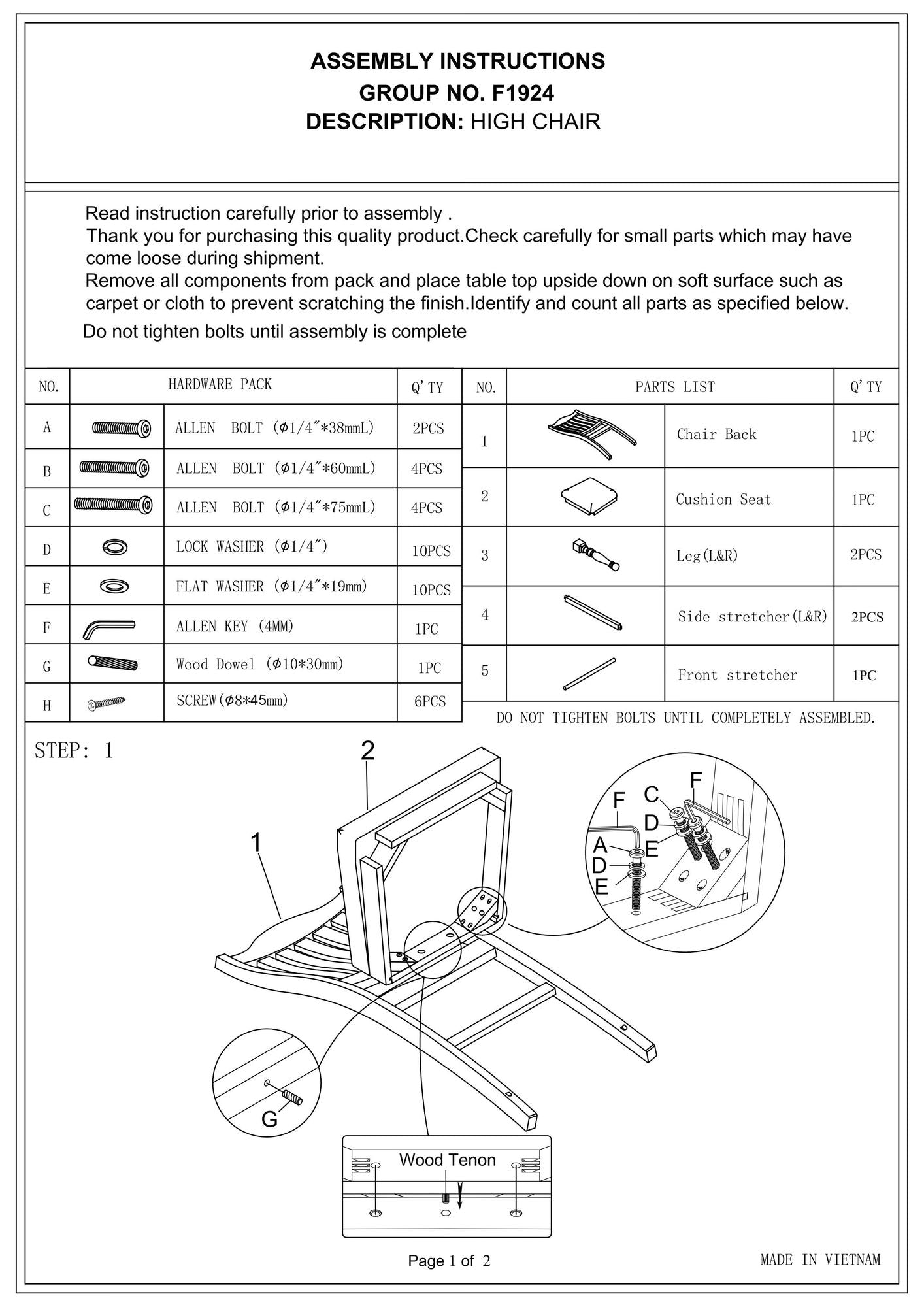 Chairs - 20" x 24" x 43"H, 24"H Seat