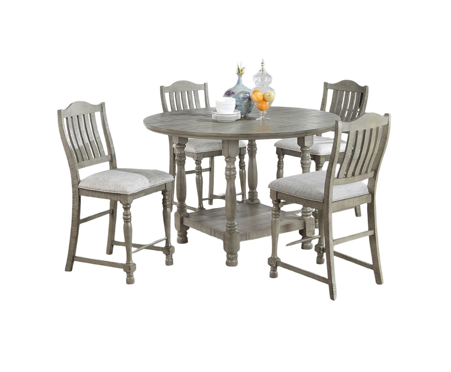 Dining Table 4x High Chairs 5pcs Counter Height Dining Set Light Grey Finish Dining Room Furniture Plush Upholstered Fabric Seat Contemporary Style