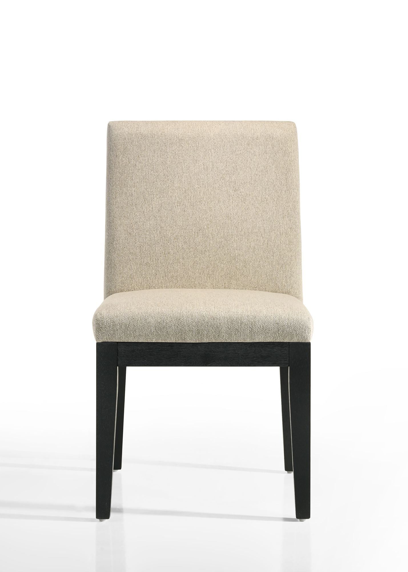Jasper Ebony Black 7 Piece 59"W Round Dining Table Set with Beige Fabric Chairs