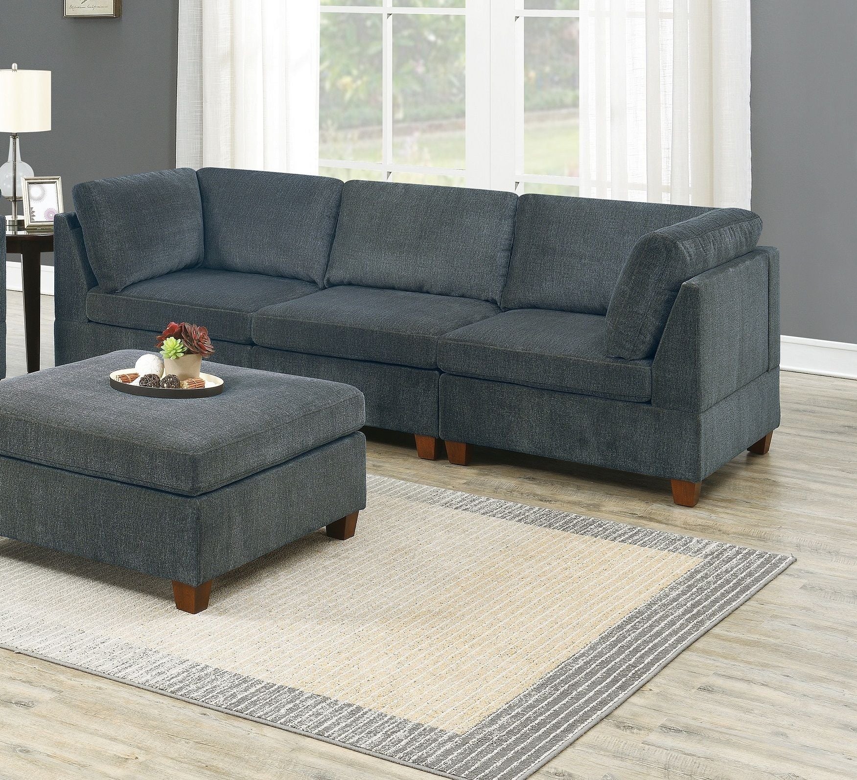 Living Room Furniture Grey Chenille Modular Sofa Set 6pc Set Sofa Loveseat Modern Couch 4x Corner Wedge 1x Armless Chairs and 1x Ottoman Plywood