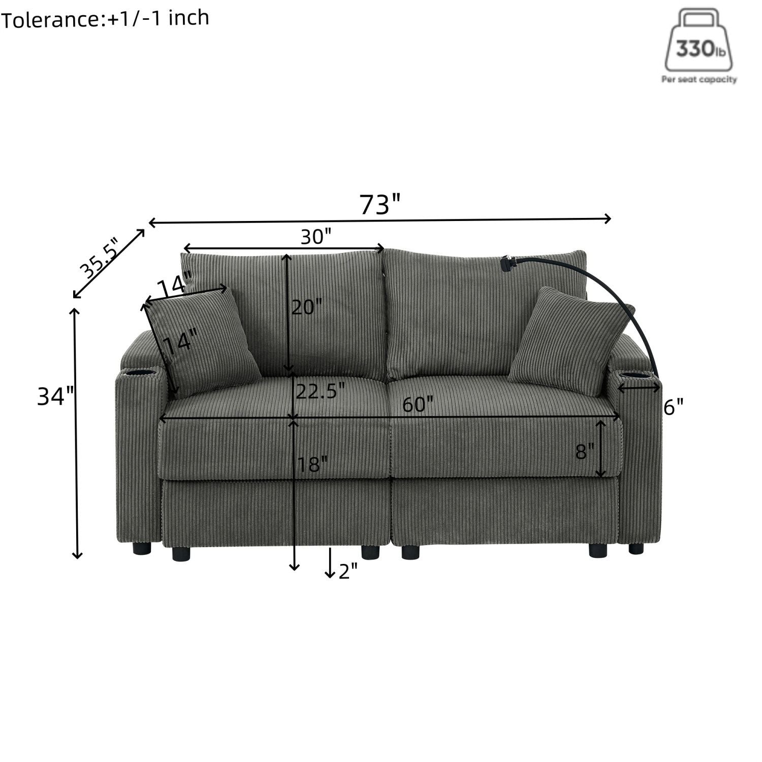 Breathable Corduroy Fabric: The deep seat sofa is covered in corduroy fabric, provides a luxuriously soft and plush texture, inviting you to indulge in moments of relaxation and to take a tranquil nap when desired.