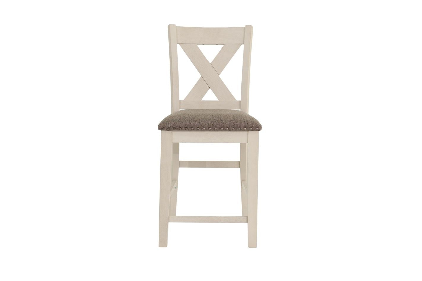 It's simplicity at its best with these Natural wooden dining room seating that feature upholstered seat cushions trimmed with accent buttons. Choose from counter height chairs or stools.