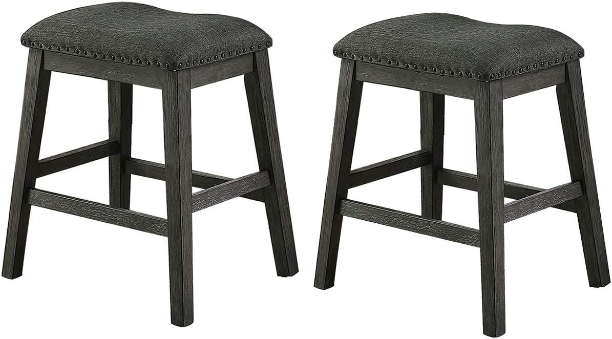It's simplicity at its best with these gray wash dining room seating that feature upholstered seat cushions trimmed with accent buttons. Choose from counter height chairs or stools.
