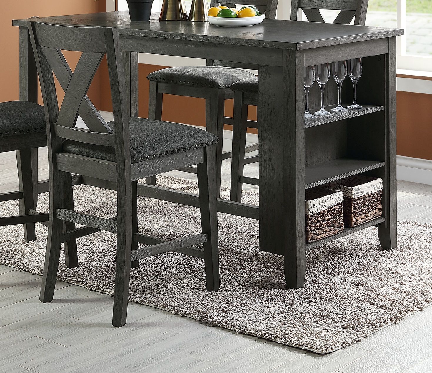 Modern Gray Finish 5pc Counter Height High Dining Table w Storage Shelves High Chairs And Stools Wooden Kitchen Breakfast Table Dining Room Furniture