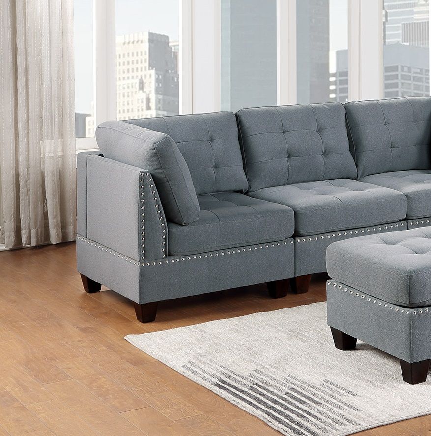 Modular Sofa Set 6pc Set Living Room Furniture Sofa Loveseat Tufted Couch Nail heads Gray Linen Like Fabric 4x Corner Wedge 1x Armless Chair and 1x Ottoman