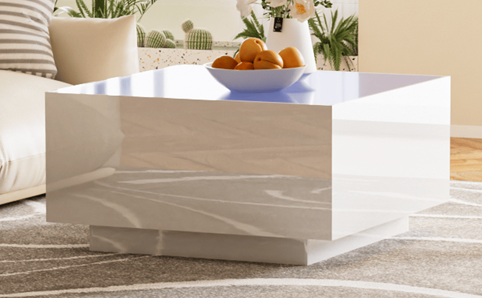 This modern coffee table is equipped with LED light strip, 16 colors variable and 4 flashing modes, bring your living room a warm atmosphere and feeling to your night. The light strip is equipped with a remote control to facilitate adjusting its color, brightness and effects.