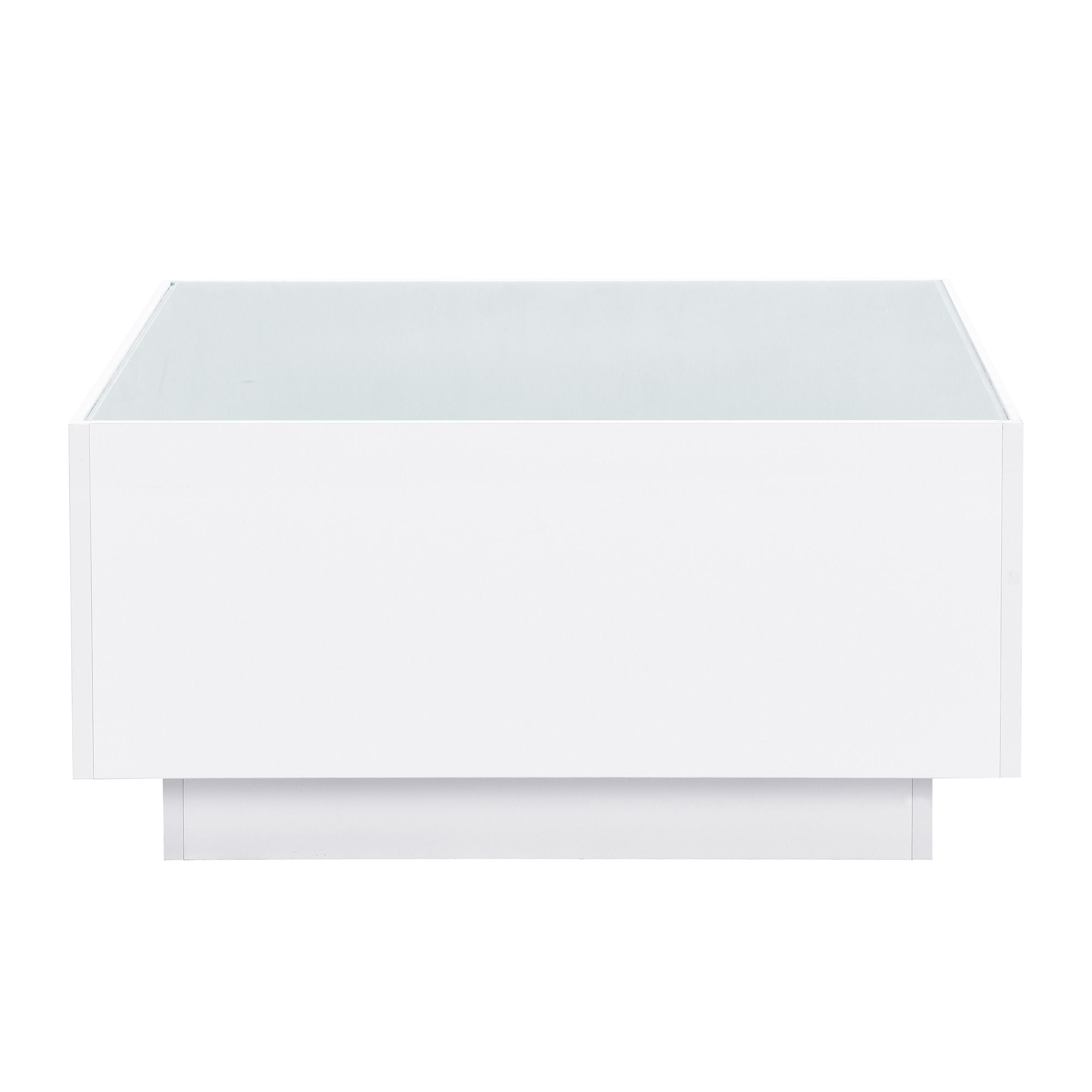 ON-TREND Square High Glossy Coffee Table with 16-color LED Strip Lights, Modern Center Table with 5mm Frosted Tempered Glass Top for Living Room, White, 27.5*27.5in