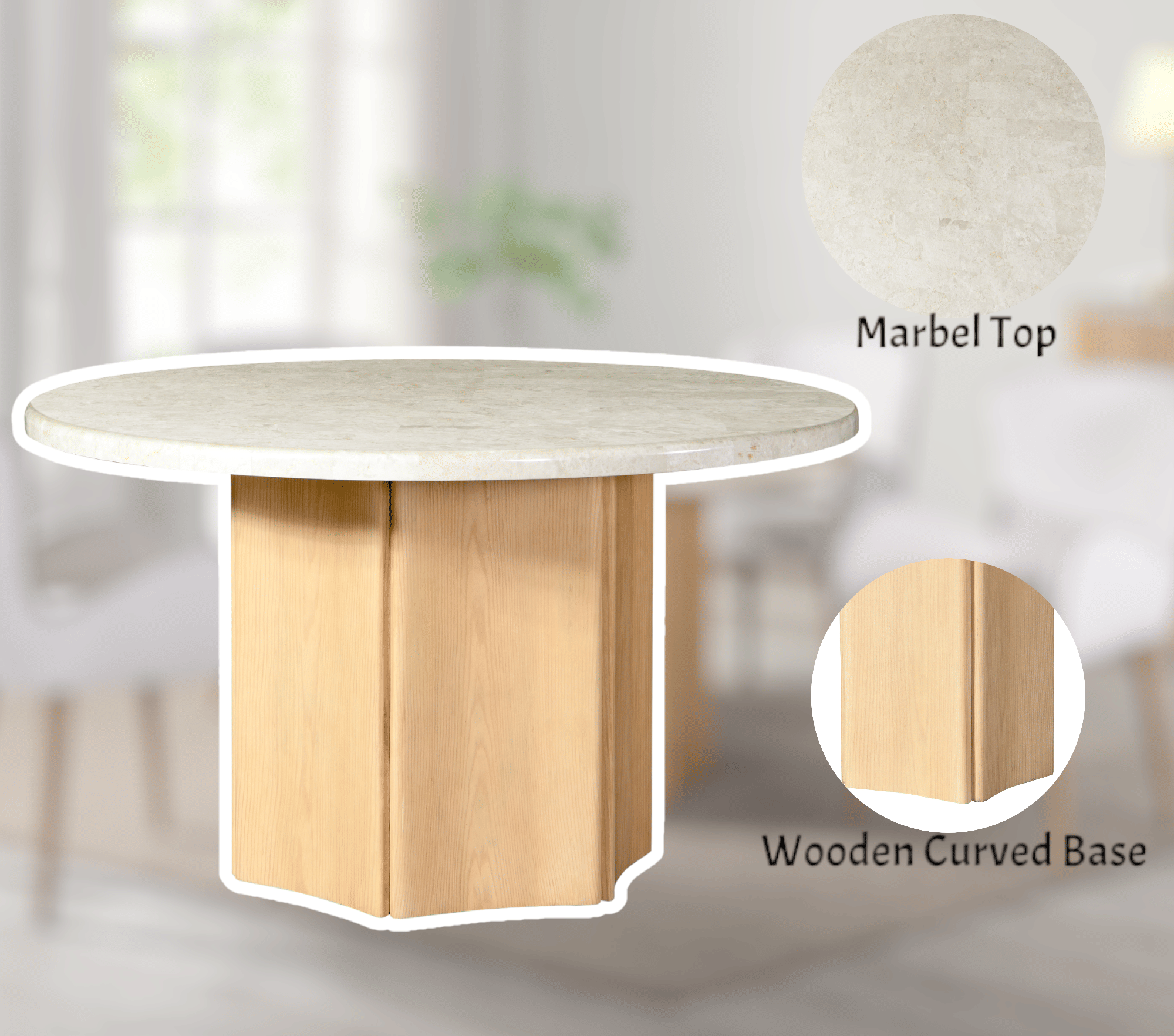 Qwin Natural Marble Top & Oak Finish Round Dining Table