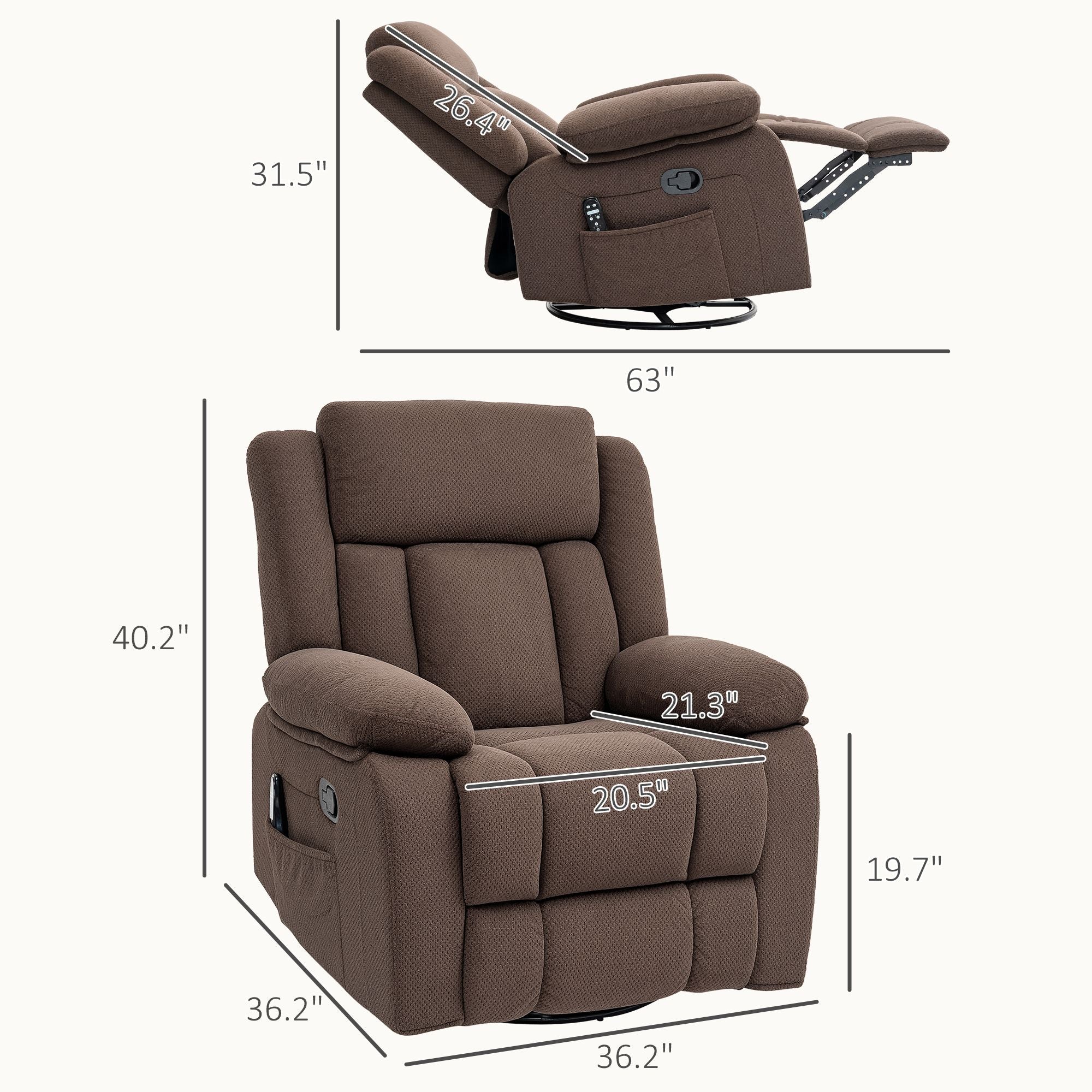 Recliner Massage Armchair with Heat, Oversized Swivel Rocker with Footrest, Remote and Side Pockets, Brown